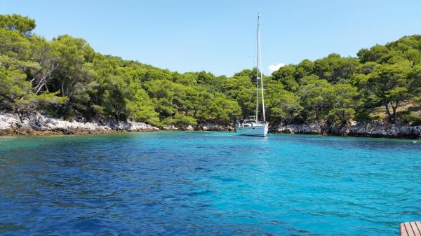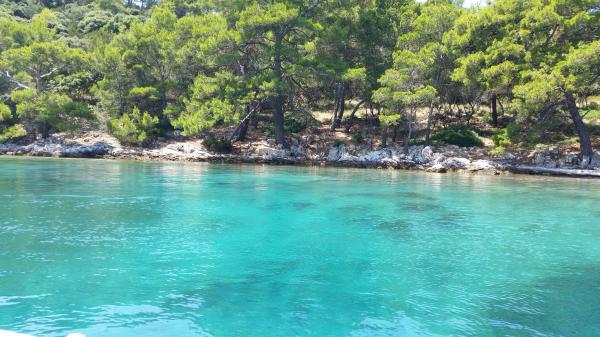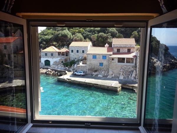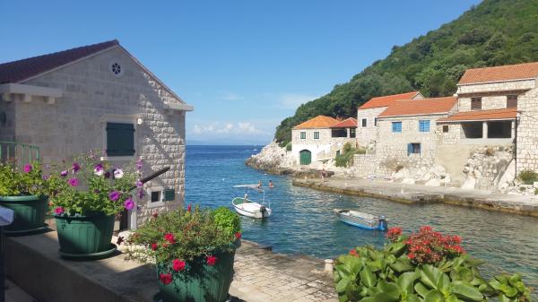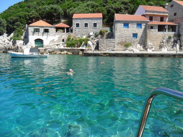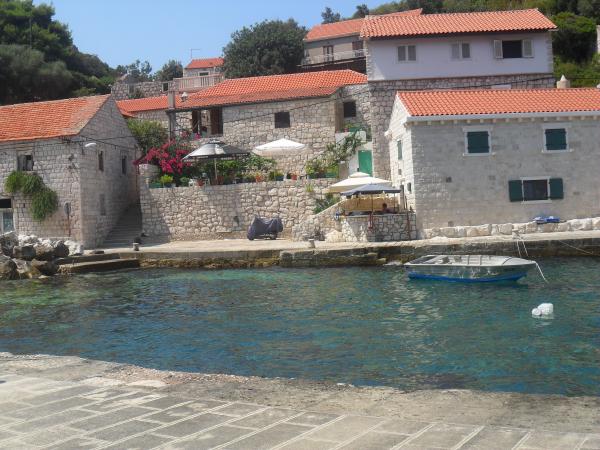 Apartments Simic are located in a quiet, attractive bay harbor at 10 meters from the sea. Behind the apartment 2 plus 1 is a terrace in the garden and a separate exit to the stairs to the sea. At 5 meters from the sea is a large terrace, available for both apartments. It is equipped with deck chairs, tables and chairs, umbrellas and outdoor shower. There is also an outdoor grill, berth and shared parking at 15 meters from the house.