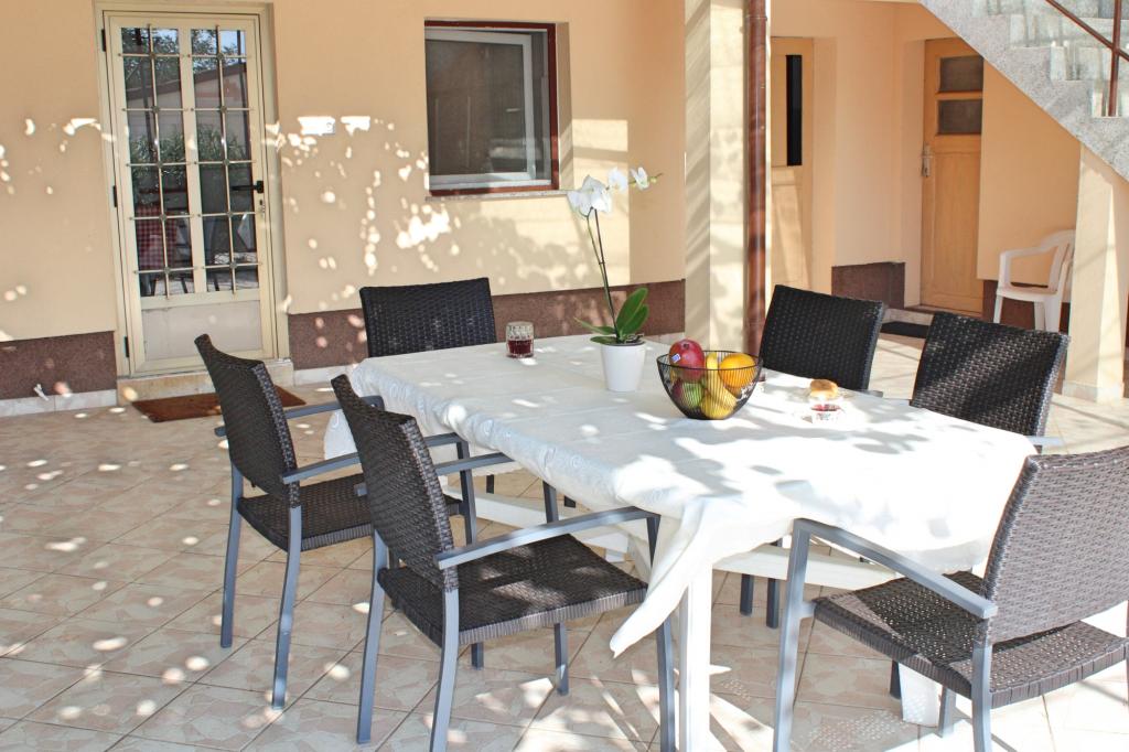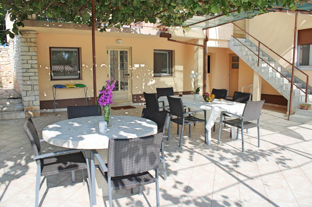 Holiday house Nino can accommodate 8 people. Located in the center of Ližnjan, a quiet neighborhood with a fenced yard, ideal for rest, relaxation and enjoyment. It consists of one apartment on the ground floor which has two double rooms with double beds, kitchen, dining room with living room, bathroom, washing machine, air conditioning, TV. On the first floor there are two double rooms with double beds and a bathroom. One bedroom has a large terrace overlooking the sea. The bedrooms are air-conditioned. On the ground floor there is an outdoor kitchen and a terrace in the shade of kiwia. The yard is fenced, ideal for grilling, parking your car, sunbathing and children's play. Pets are welcome. They are charged EUR 7,00 per night.