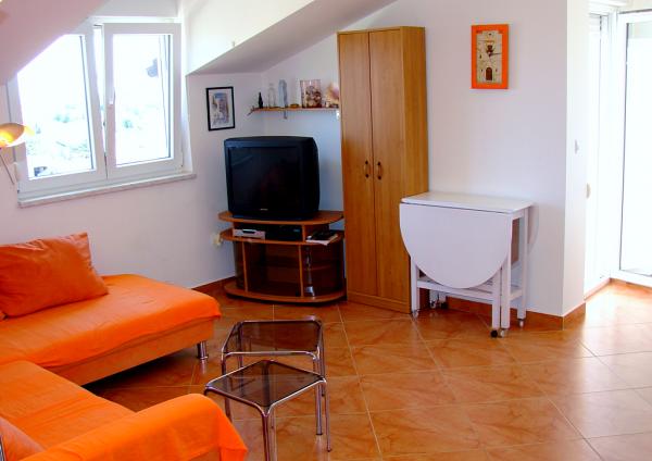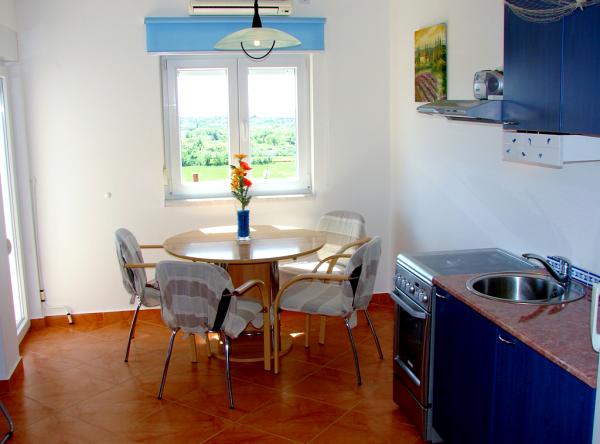 Apartment Lana is located in the center of Ližnjana and allows you the perfect vacation, whether in the form of an active holiday in the area or relax on the balcony overlooking the Medulin Medulin archipelago, Premanturu, Cape Kamenjak, Losinj. The apartment has one bedroom with two single beds (90x200cm 90x220cm +), a large living room with dining area and kitchen, bathroom with shower and a balcony with outdoor seating. In the living room there is a truckle bed with a double bed. There is a possibility for one extra bed. All rooms have sea views and mosquito nets. Parking in the yard.