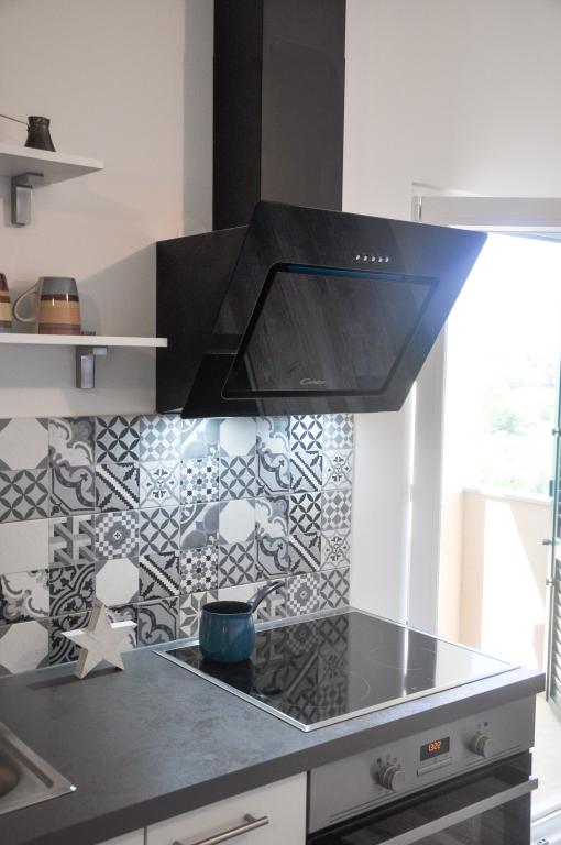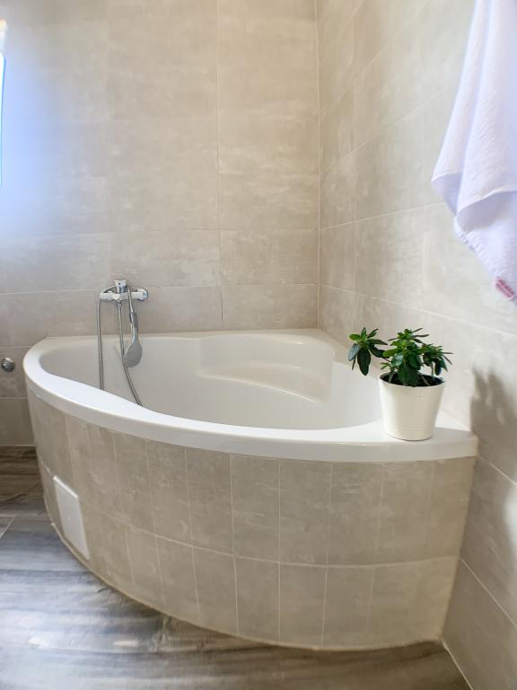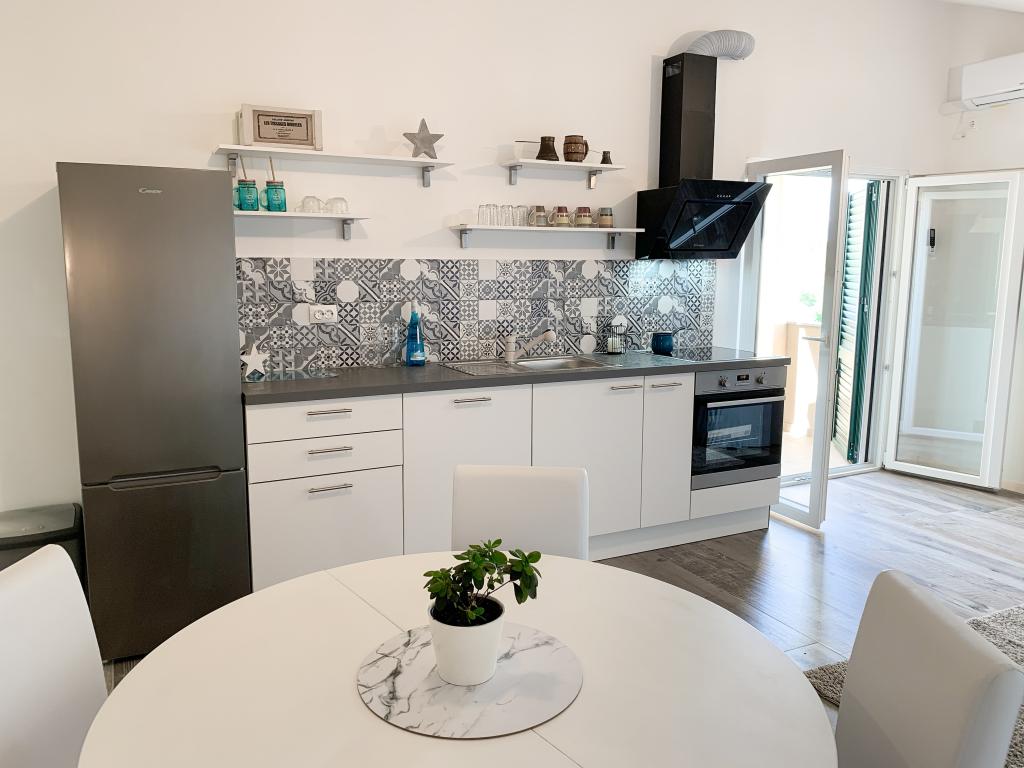 Apartments Carnizza offers a large courtyard with free and covered parking and a children’s playground for football, volleyball and swings. They also offer space to walk around the house. The house is located in a quiet environment, and the view is directed to the sea and Velebit.