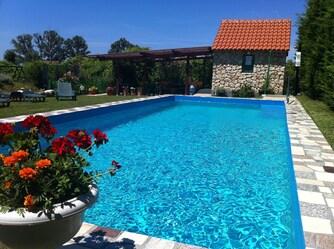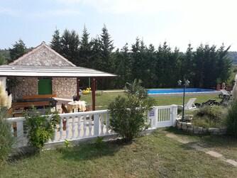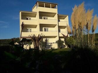 Apartments Manuela in Ljupč are located near the center of the town, only a 5-minute walk away from shops, cafes on the coast and the most beautiful beaches. The house consists of a total of 8 apartments for rent, and the total capacity is 32 people. The parking space is protected and secured for all our guests. All apartments are fully equipped for guests, and each terrace offers a view of the sea and the entire town. The swimming pool is available to the guests every day, and there are no neighbors near the house, only peace, greenery and nature. Next to the pool there is a smaller building with a porch for resting and a barbecue area.