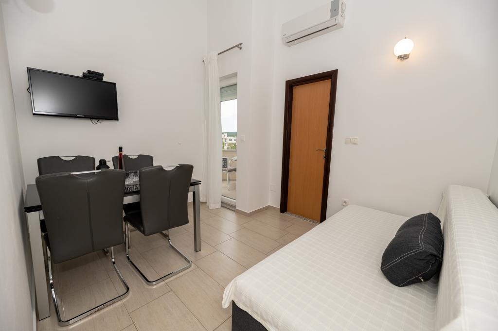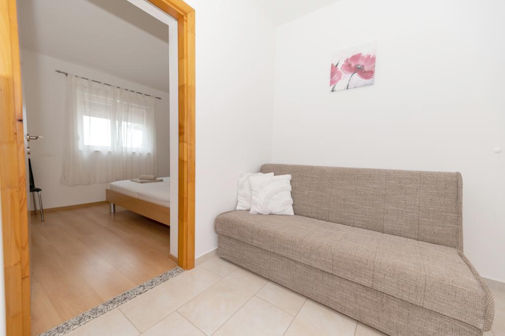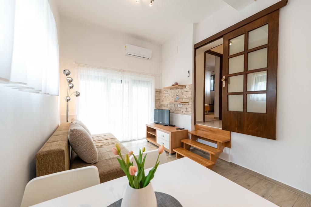 The apartment is well equipped, very clean, well-kept surroundings. The owner is very friendly and helpful. In the inn, which is part of the apartments, excellent, very tasty pizzas. The beach right in front of the apartments, very suitable for small children. A very quiet village for a peaceful, relaxed holiday. Excellent, kudos.
