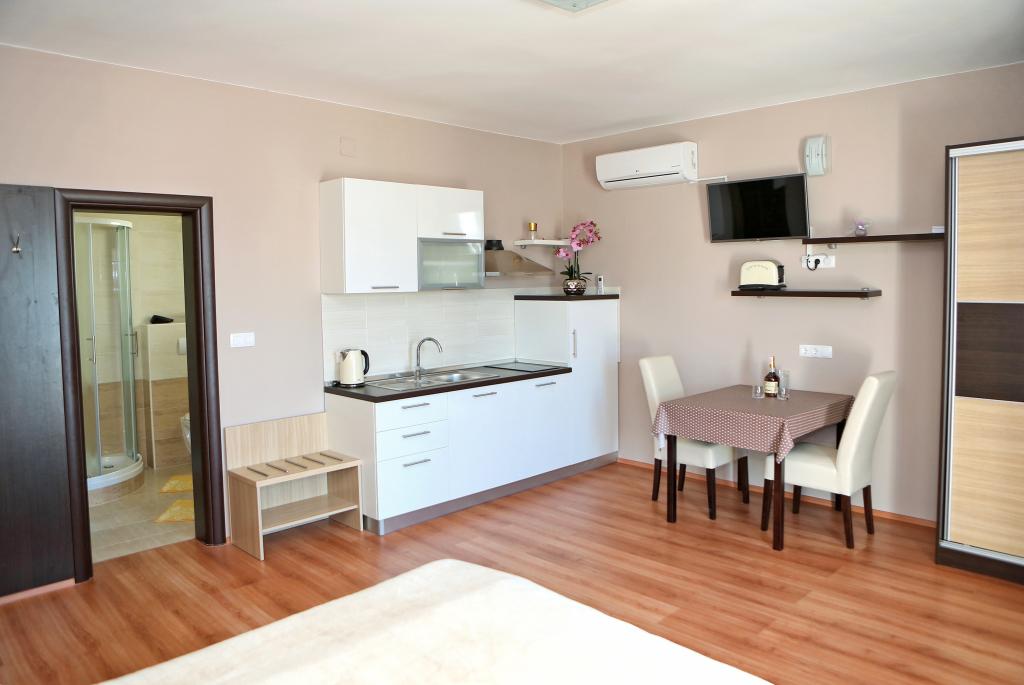 Your vacation object / rooms is located in Ljubac, Zadar region, about 15 km away from the city of Zadar. The landlord lives in the house. The house is situated on a plot of about 2700 sqm in the immediate sourrounding of the child-frienldy beach. From the terrace you have a beautiful view of the entire bay. Parking spaces are available on the property. To the marina is around 600m from our house. There's another beach port where you can do sunbathing and swimming. A bar with almost all kind of drinks is e.g. hot and cold is right there as well. We are happy to provide you with useful information and explain the operation of the electronic devices. Our rooms are not suitable for the accommodation of children under 10 years. We therefore ask to refrain from requests should this apply to you and ask for your understanding.