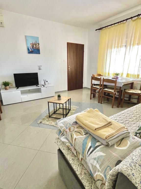 In a quiet location in Lopar are located Apartments Azik, ideal for rest and relaxation. In the immediate vicinity are the famous beaches - Rajska plaža, Livačina, Stolac (FKK) and Sahara, and restaurants, a bakery and shops are just a few minutes walk away. All apartments are fully equipped for a comfortable stay - clean linen, towels and all necessary equipment are available. Each apartment has a beautiful view of the sea, which makes your vacation special.