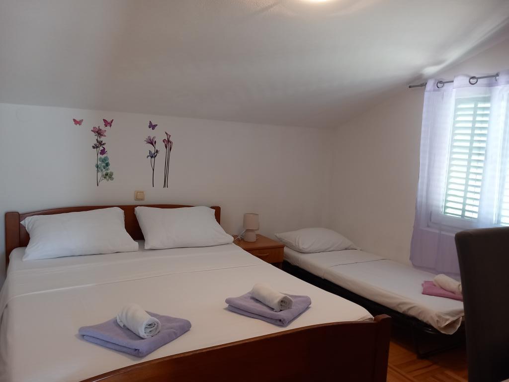 Mira Apartments are located in a family house, and offer accommodation for up to 15 people in 3 apartments. We are located in a quiet neighborhood, almost at the very end of a dead-end street, and all the essential amenities (shop, bakery, ATM, pharmacy, restaurants, post office, cafes...) are nearby, less than a 10-minute walk away. The most famous beach on Rab, Rajska plaža, almost 2km long and great for children, is the closest beach and you can get there in a 10-minute walk. We have free parking next to the house and 2 children's playgrounds. The apartments have a washing machine available and a storage space on the ground floor (for strollers or bicycles). All apartments have Smart TVs with unlimited Netflix :)