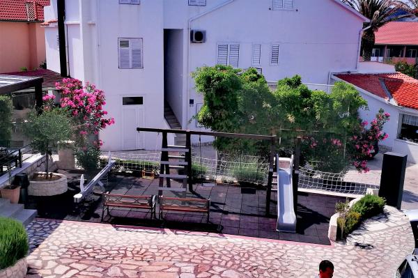 Completely and newly decorated apartments and rooms on the elevated part of Lopar on the island of Rab. We are located 300m from the sea and the beautiful and well-known Paradise Beach, 500m to the first store and 300m to the center. Guests have at their disposal an outdoor swimming pool with a sun terrace and children's playground. Rooms and suites are decorated in warm tones. Guests at the yard of the house have at their disposal an ala cart restaurant. All guests are provided with spacious and free parking in the area of the house.