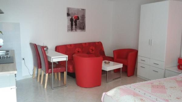Apartments Majic are located 4-5 minutes walk from sandy beaches in the area with a natural shade and a restaurant. The apartment is close to all necessary facilities (restaurants, stores, nurseries, fish market, doctor, station, bus station). Apartments can accommodate a total of 14 people in three modern apartments. The apartments have three parking spaces and 80 meters from the property there is a city parking lot. Nalčaze in a quiet part of town, so you can hear the sound of waves from the beach. Nearby there are hiking trails and mountain bike trails.