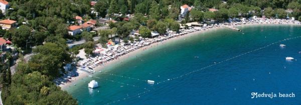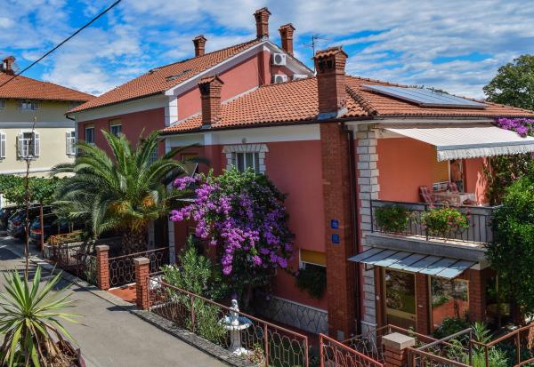 Apartments Gržević located in a quiet part of Lovran, 300 meters from the center of town and 200 meters from the beach. There we have four rooms and two suites. All rooms are equipped with air conditioning, bathroom, fridge, wi-fi, TV, balcony with a view. Apartments are equipped with kitchen, bathroom, air conditioning, satellite TV, Wi-Fi and balcony. . Breakfast 5 euros per person. There are 3 parking spaces. Rijeka Airport is 50 km.