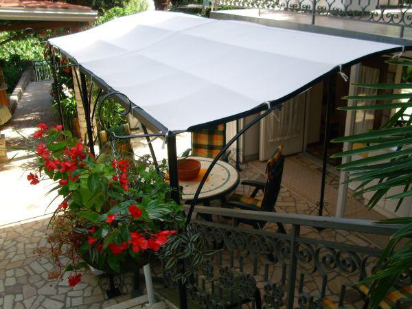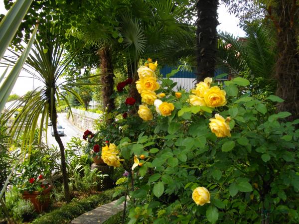 The apartment is located on the ground floor of a detached house. Particularity is a large garden. Plenty of trees, roses, shrubs and flowers. In the garden there is a covered arbor with grill, a fully equipped kitchen and a large garden table. The garden space is complemented by the space of the apartment and forms a whole where guests can enjoy a pleasant freshness, peace and greenery. Quiet oasis within easy reach of the beach and center of the resort with all amenities. SAT TV, Air conditioning, WiFi 0-24h. Parking on the garden.