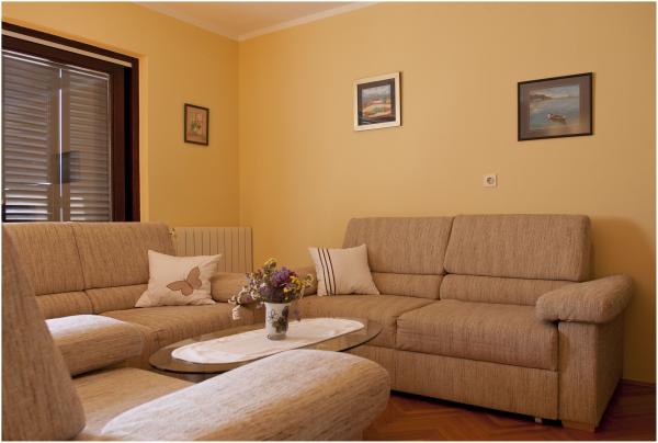 Fully equipped three-bedroom apartment in a small and quiet place in Lukoran, located on the main road on the island of Ugljan. The apartment is spacious with a terrace overlooking the sea. The sea is about 1 km away. The beaches in Lukoran are mostly pebbly with beautiful clean waters. There are also treking and cycling trails nearby that are great for nordic walking and mountain biking. You can also tasting local specialties, such as our olive oil, sweet onions, dried figs and the like.