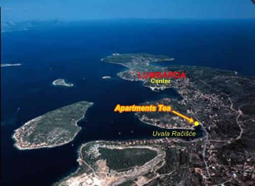 The apartments TEA are situated in a quiet bay in Lumbarda on the island. They are located in the first row to the sea, and offer a beautiful view of the bay. Surrounded by green spaces. The facility is located 10 minutes walk to the center, 5-10 minutes to the rocky beach and 30 minutes walk to the beach. From the famous historical town of Korcula facility is located 5 km away.