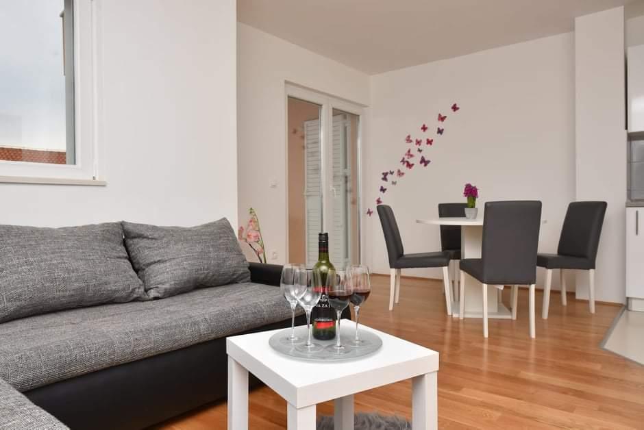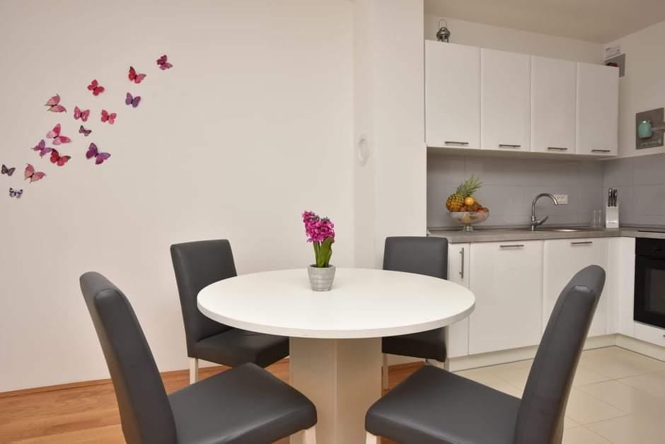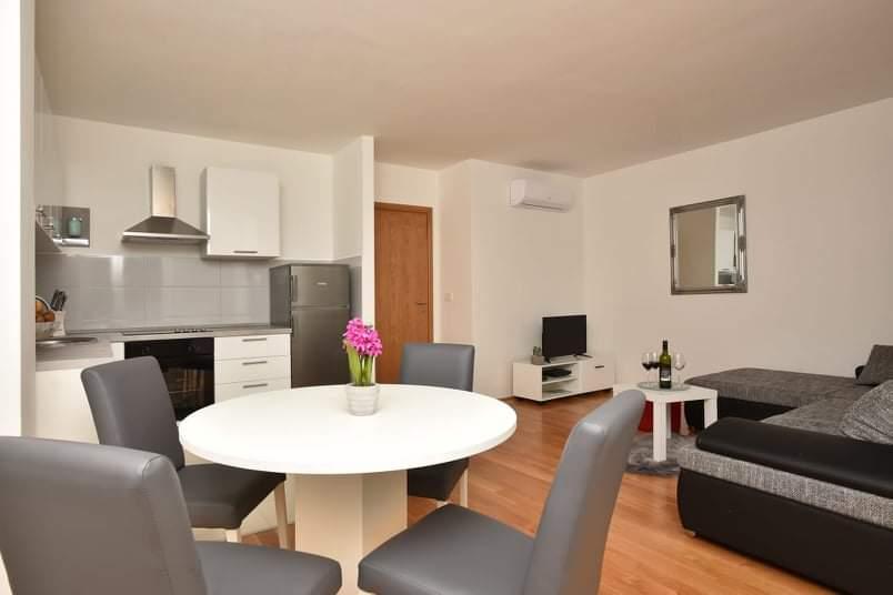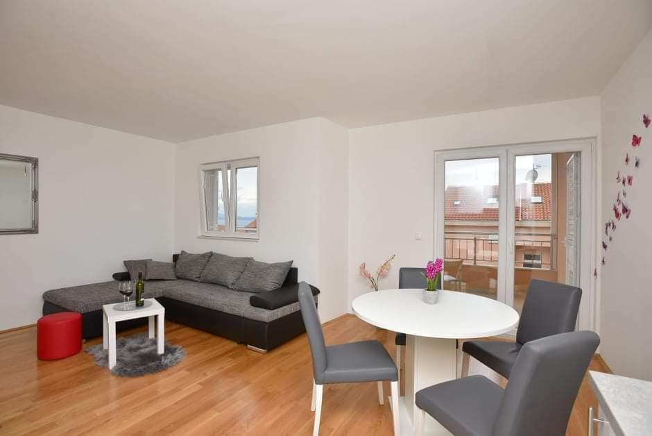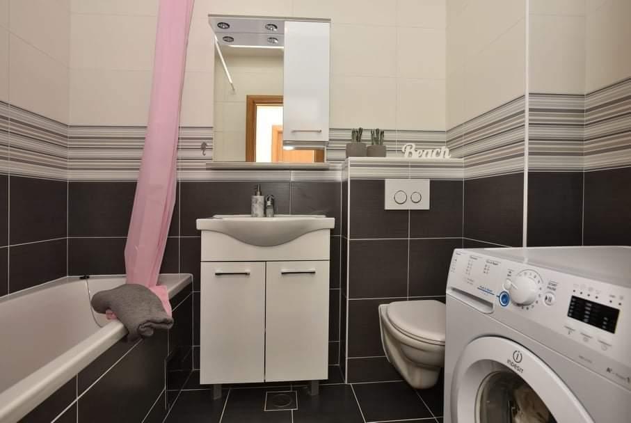 Apartment with sea view, fully equipped! Charming and modern apartment is located in a quiet position, only 500 m from the sea and the main city beach. It is located on the second floor of a residential building. Near the building there is a cafe, shop, pharmacy. The apartment is suitable for 4 people. It has 1 bedroom with 1 double bed and a sofa bed in the living room. The price of the apartment includes: private parking space, unlimited internet, air conditioning, TV, towels, bed linen, kitchen with all necessary facilities ...