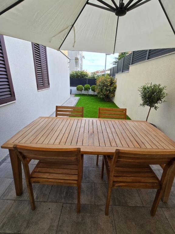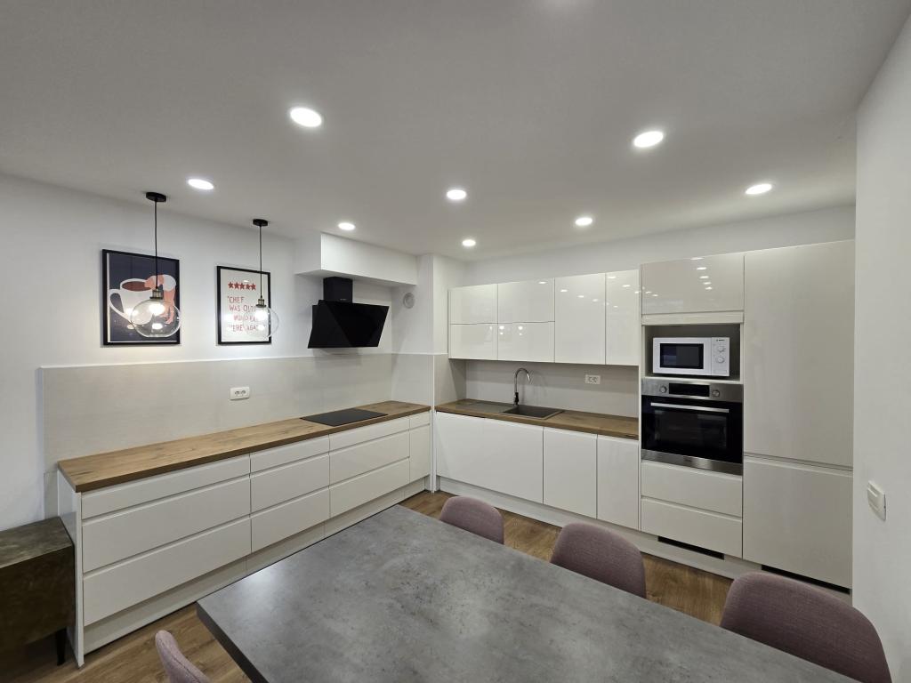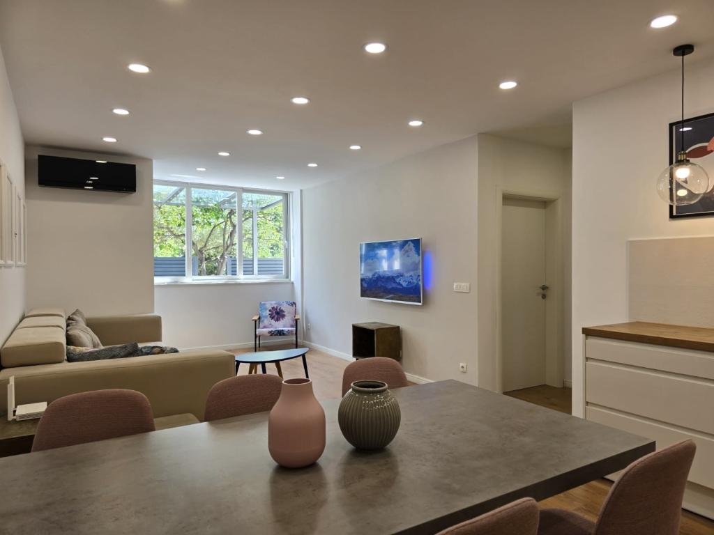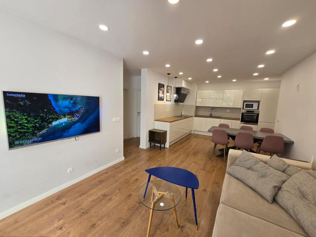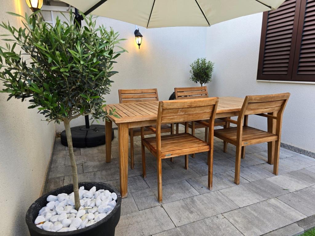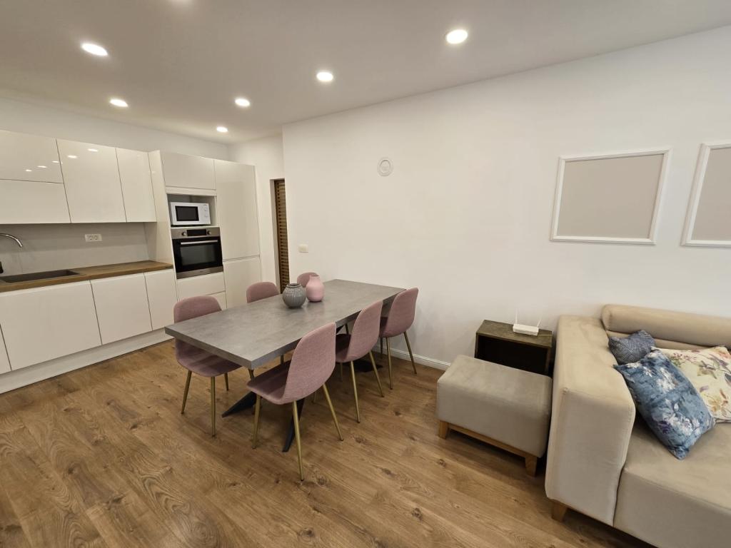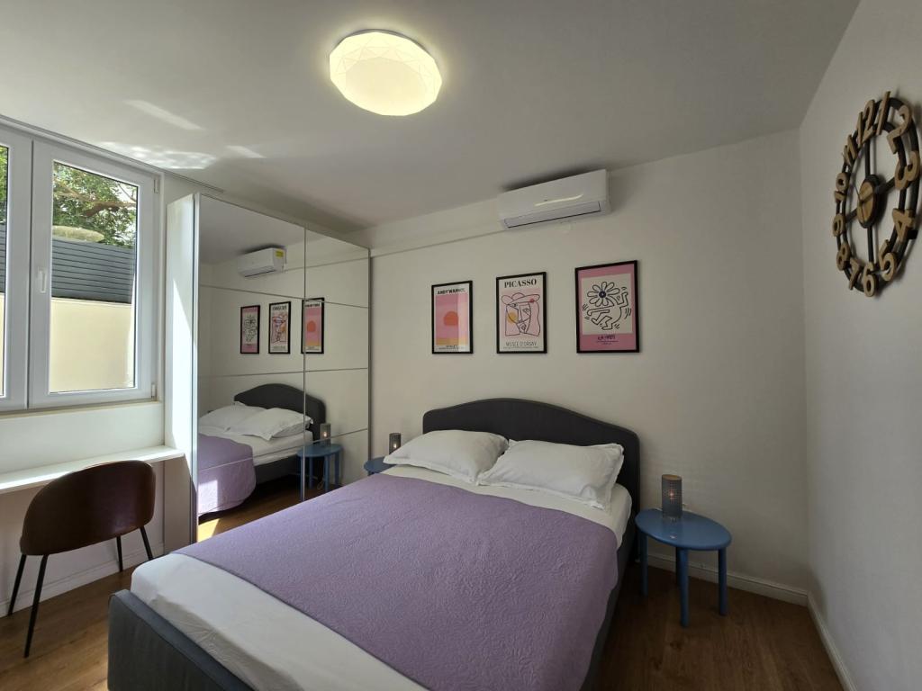 Apartment Ani is located in a quiet part of the city, 500 meters from the city waterfront and the central beach (7-10 minute easy walk). It is located in a residential building with a separate entrance and has been completely renovated and newly renovated. The apartment also has a 60m2 garden. The garden is surrounded by trees and plants and is partially covered. The apartment has two bedrooms. One has a king-size bed, and the other room has a queen-size bed. The rooms are air-conditioned and have a TV and a window. The living room and kitchen form a large open space with air conditioning, a large dining table, as well as a large sofa for sitting. The modern kitchen has all the necessary facilities, an oven, a microwave oven, a dishwasher, a kettle, as well as a fridge with a freezer. The bathroom has a shower, a toilet, a large mirror and a sink, as well as a window. Public parking is free or subject to payment, depending on availability. The facility has internet access. There is a dryer for clothes, a vacuum cleaner, and an iron for clothes.