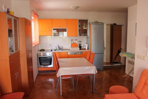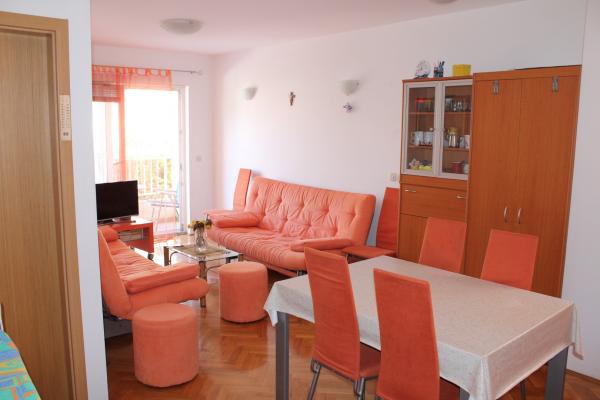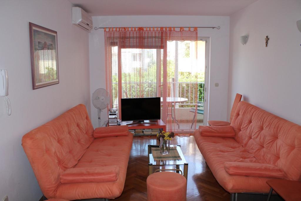 I am renting a four-bed apartment (2 plus 2) in Makarska on the first floor of the building in Kralja Petra Krešimira IV 66 street. The apartment has 44 m2 and consists of: kitchen, dining room, living room, bedroom and bathroom. The living room and the room have access to separate balconies. The apartment is fully equipped with furniture and home appliances, and has Smart TV, radio, air conditioning and Wi-Fi.