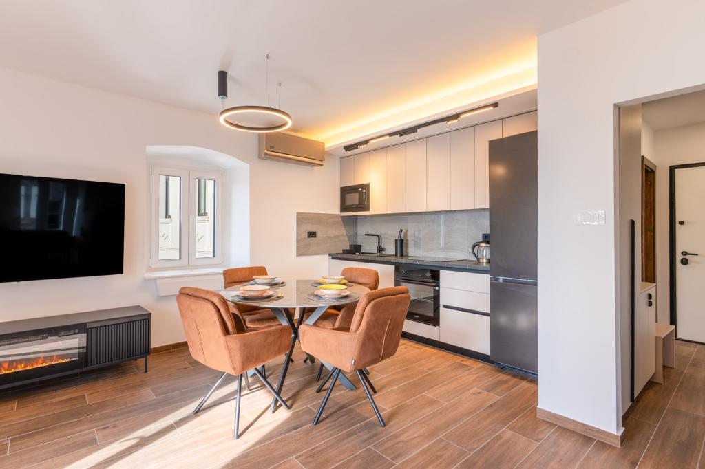 Apartment Azzuro is located in the very center of Makarska, on the waterfront, and offers modern and spacious accommodation with sea views. The apartment has one bedroom, a bathroom, a fully equipped kitchen and a comfortable living room, with a small balcony overlooking the sea. Thanks to its excellent location, all amenities such as beaches, restaurants, cafes and shops are within walking distance. An ideal choice for guests who want to stay in the center of events and enjoy the lively atmosphere of Makarska, with guaranteed staff support during their stay.