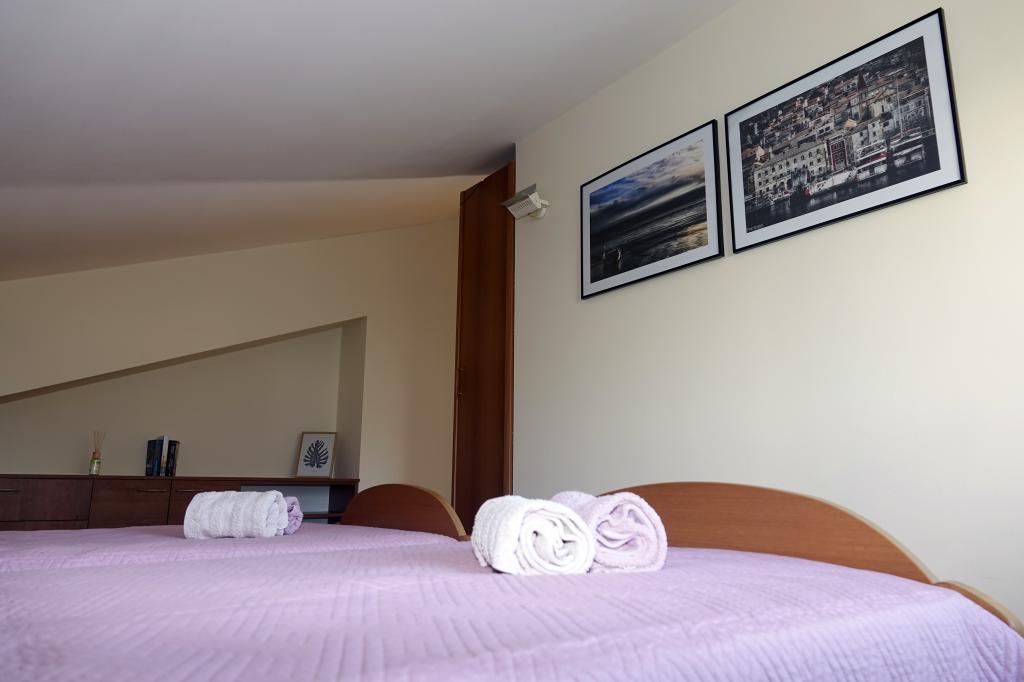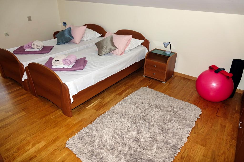 Apartment Jurica is located in a quiet part of town, in the attic of a family house, 450 m away from the beach, and a 10-minute walk to the city center. It consists of three bedrooms, 2 bathrooms, kitchen and dining room. It has a large terrace and two balconies with beautiful panoramic views of the sea and islands, and the mountain Biokovo. Ideal for couples or families with children. There is a grocery store nearby, a restaurant is 300 meters away. During your stay the hosts are at your service for all the detailed information, about excursions, boat rental, taxi service, bike rental ...