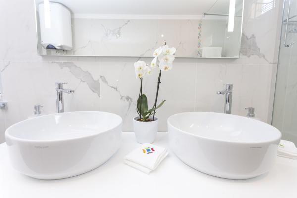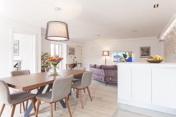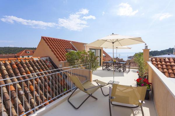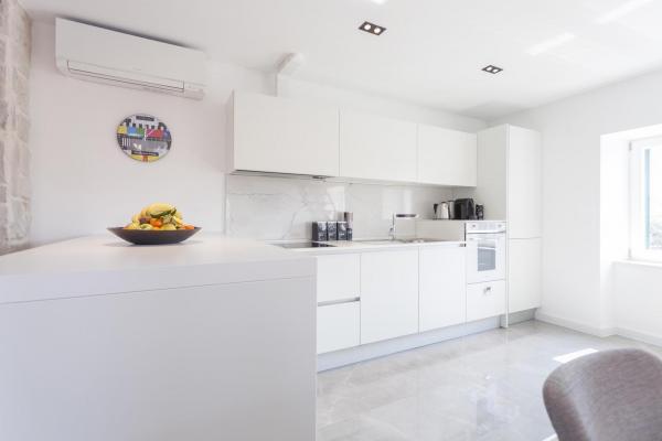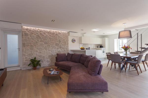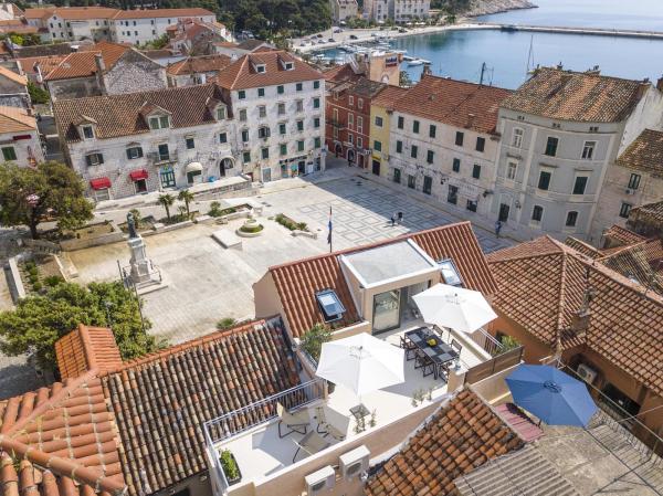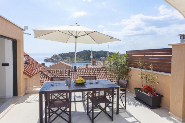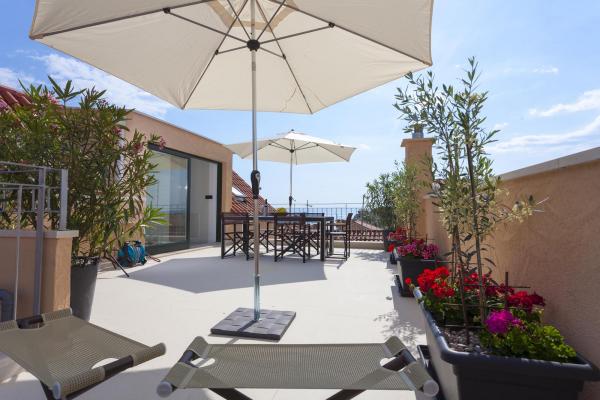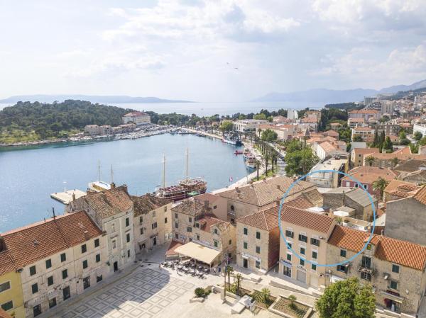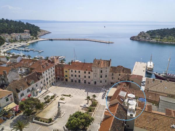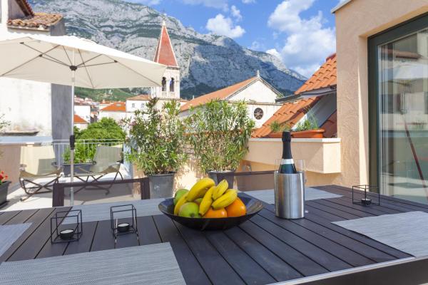 New, modern and luxuriously decorated duplex apartment in the center of Makarska. It is located on the main town square, only 50m from the city's waterfront, the best city restaurants, wine bars and the cathedral of St. Brand. The apartment has a beautiful terrace overlooking the city harbor. The apartment is fully air conditioned, wireless internet is available in all rooms and each room as well as living room is equipped with LCD TV. The kitchen is fully equipped with all appliances including dishwashers, microwave ovens, oven, coffee maker, etc. Two bathrooms are available with towels and toiletries. Private parking is about 100 m away from the apartment and charges 16 € / day.