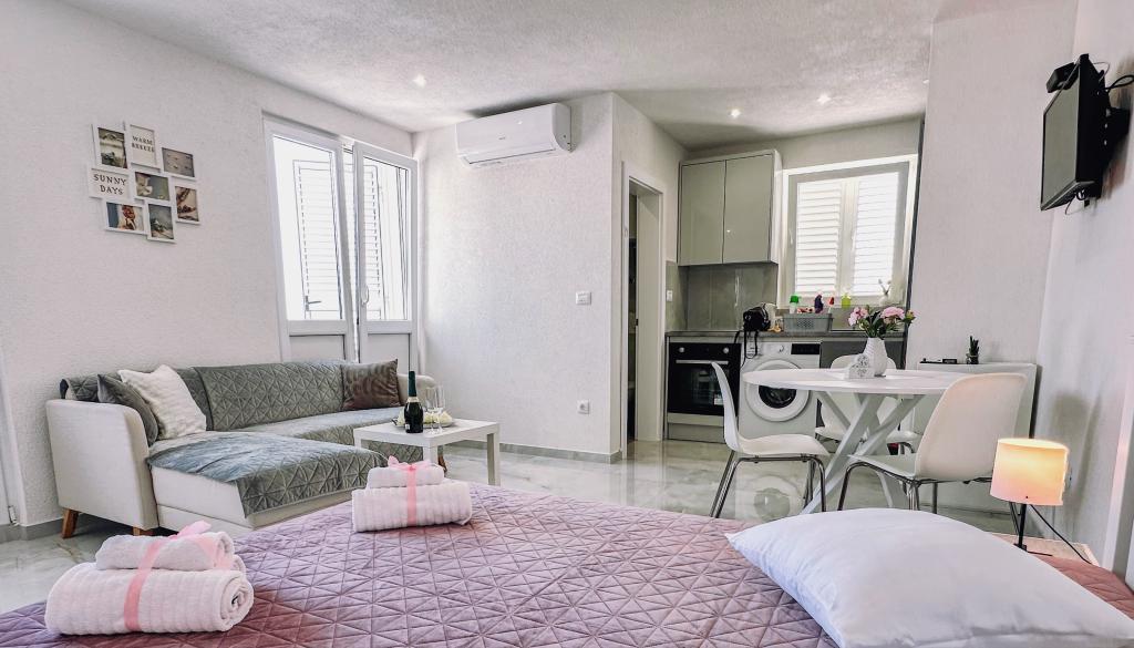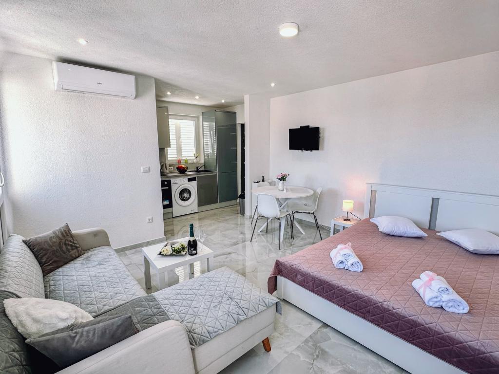 Apartment Marta is located in Makarska, 400 metres from Makarska Main Bus Station and less than 1 km from Makarska Riva Promenade. The property features sea and mountain views, and is 34 km from Blue Lake. The property is non-smoking and is 1.2 km from St. Peter Lighthouse. This 1-bedroom apartment features free WiFi, a flat-screen TV, a washing machine and a fully equipped kitchen with an oven and a fridge. Towels and bed linen are provided in the apartment. The apartment also offers a changing room. Popular points of interest near Apartment Marta include Makarska Franciscan Monastery, St. Marc Church and Makarska Main Square.