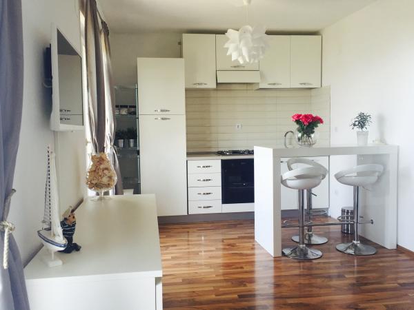 Beautiful newly renovated apartments in a suburb of the town of Makarska, the Great Hill, which is located on the slopes of a mountain slope, west of the city. Apartments have a large double bed, kitchen and dining room and a separate bathroom. Guests, too, can enjoy and dine on the spacious terrace. The apartments are located in the luxury resort makaraskog coast, guests often call it an oasis of peace and quiet, and is ideal for all lovers of adrenaline sports, cycling and parachuting. We are only 6 minutes by car from the city bustle, restaurants and night life. All guests receive a free WIFI Internet and free parking with a prior reservation. All namjještaj is brand new with regard to the apartments renovated in the summer of 2015. Each apartment is equipped with LCD TVs and a brand new kitchen appliances. We're the perfect choice for people who genuinely appreciate your vacation, restful sleep, clean mountain air, beautiful sandy beaches of Makarska Riviera.
