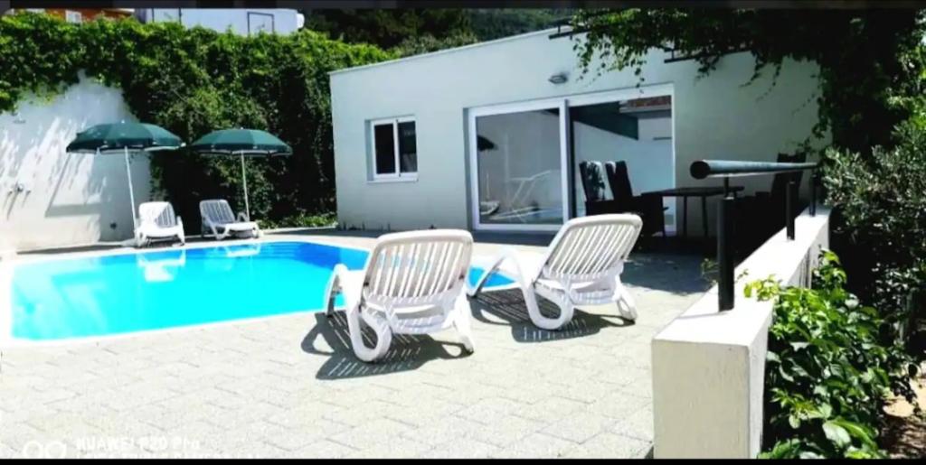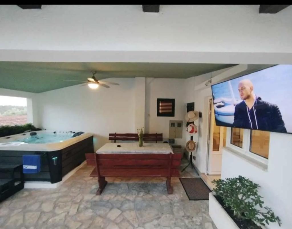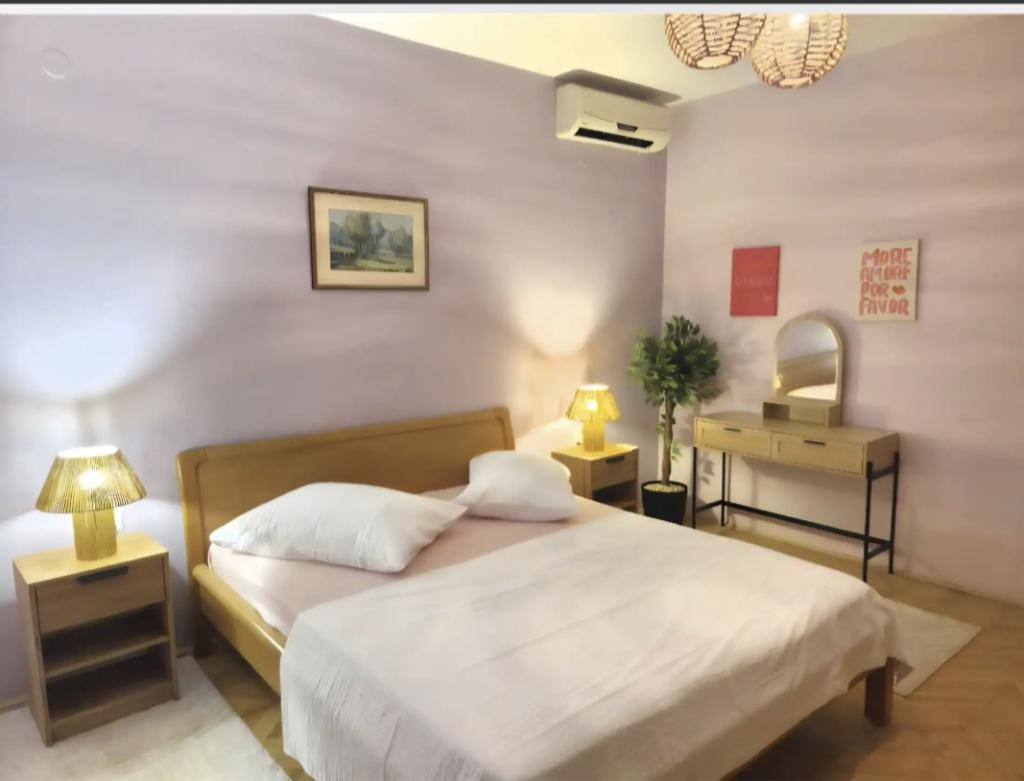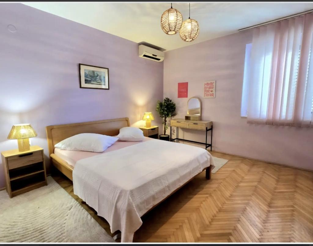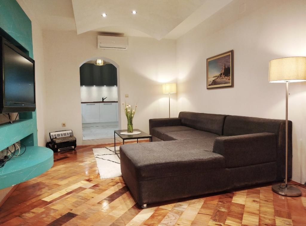 Apartment Robert is located 400 m above the old town. It has an area of 120 m2 and consists of two bedrooms, two bathrooms, a living room and a kitchen. In front of the apartment there is a jacuzzi, TV, table with benches, grill, swimming pool with sun loungers and shower and private parking for your car. Welcome!