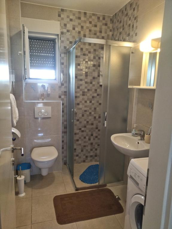 Apartment A2 is a modern and spacious apartment and the perfect choice for those traveling as a couple. It contains a double bedroom with a portable fan and a mosquito net on the window and an iron and an ironing board, a living room with air conditioning and a desk with a computer (the computer is connected to the TV with an HDMI2 cable), a dining room, a large and well-equipped kitchen (a refrigerator with freezer, dishwasher, stove and oven, kettle), bathroom with shower and mosquito net on the window, washing machine and hair dryer, large balcony, free Wi-Fi and free parking within the building.