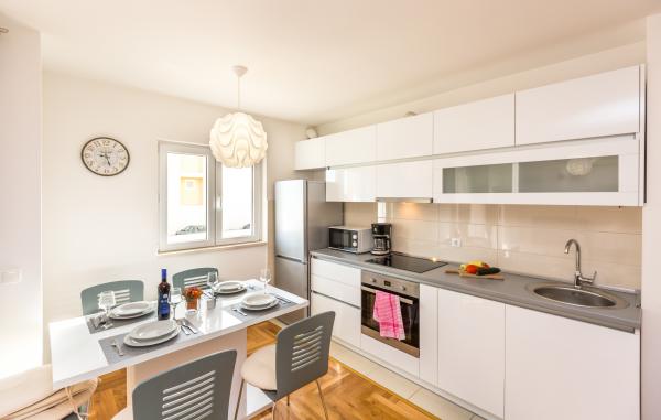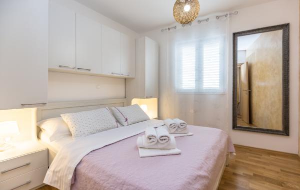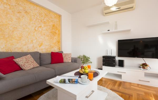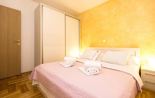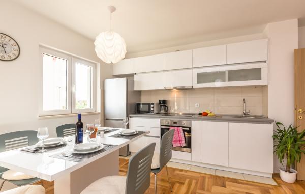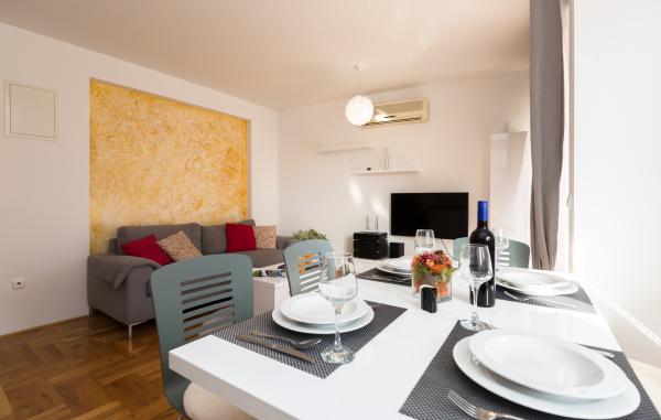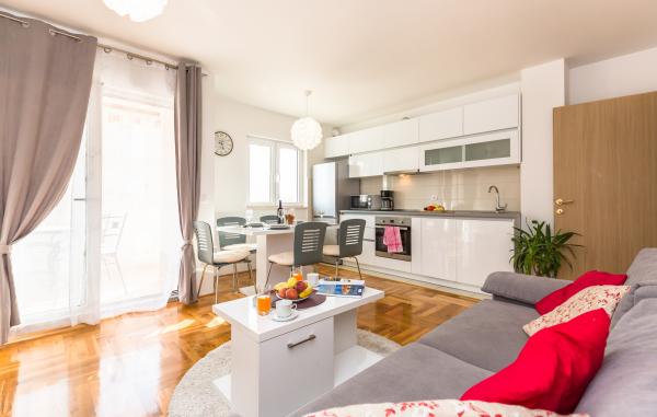 Completely and modernly equipped apartment in Makarska. Kitchen, 2 bedrooms, bathroom, living room, terrace, parking place. The apartment is located in a new building on the ground floor with a separate entrance. Air conditioning, internet included. Apartment is located 5min. walk to the beach, to the center 10min. walk. Partial sea view, apartment south oriented. Registration for apartment from 15: 00h, check-out until 10: 00h. By choosing our apartment you have the opportunity to rent electric bicycles for recreation, we can also offer you a transporter from Split Airport to Makarska for all this at an extra cost.