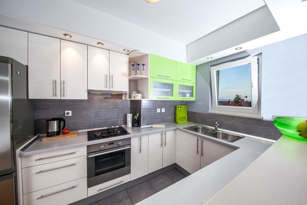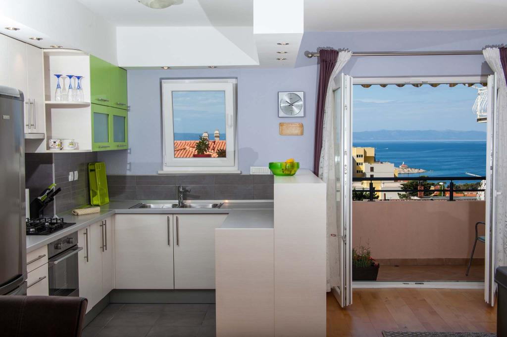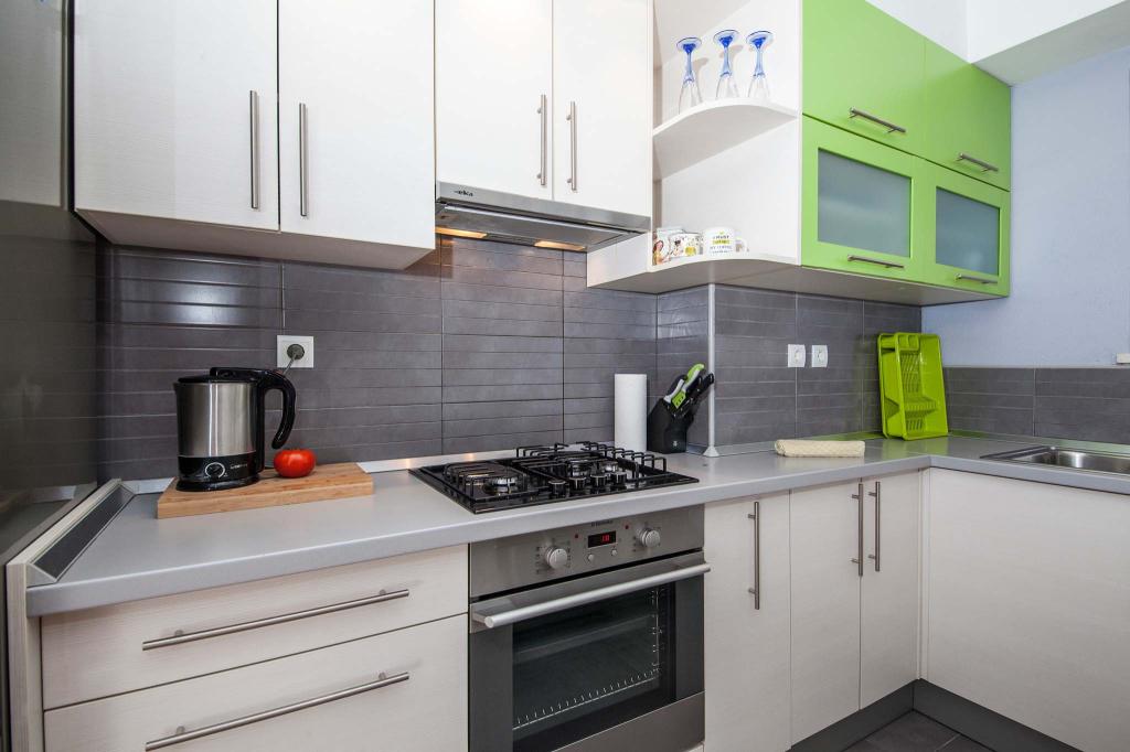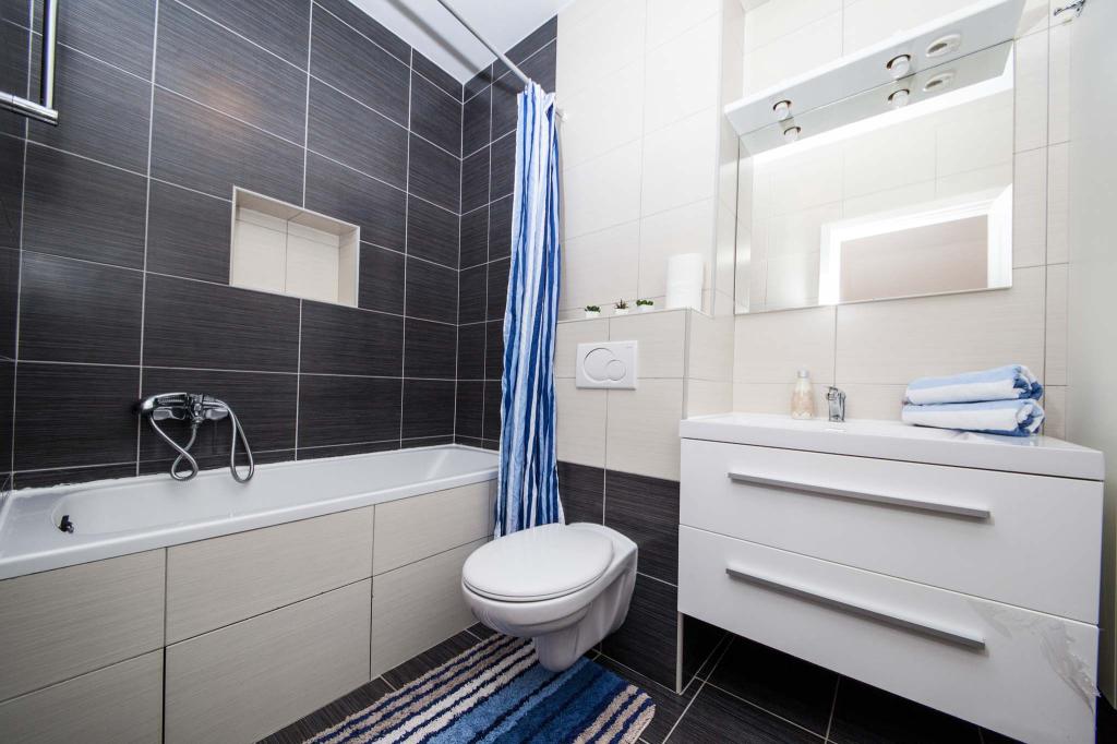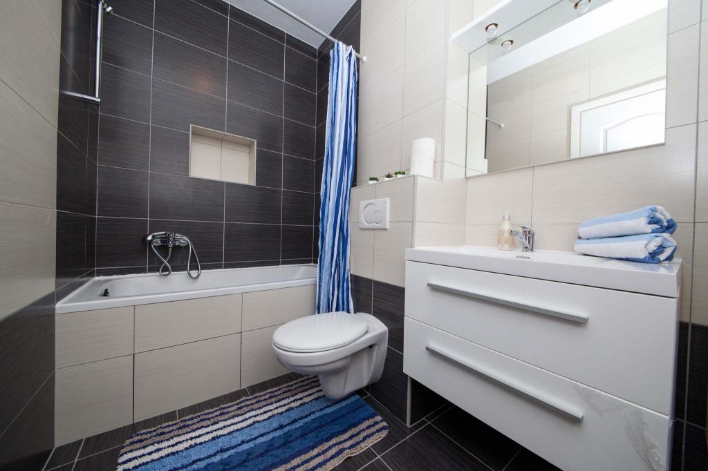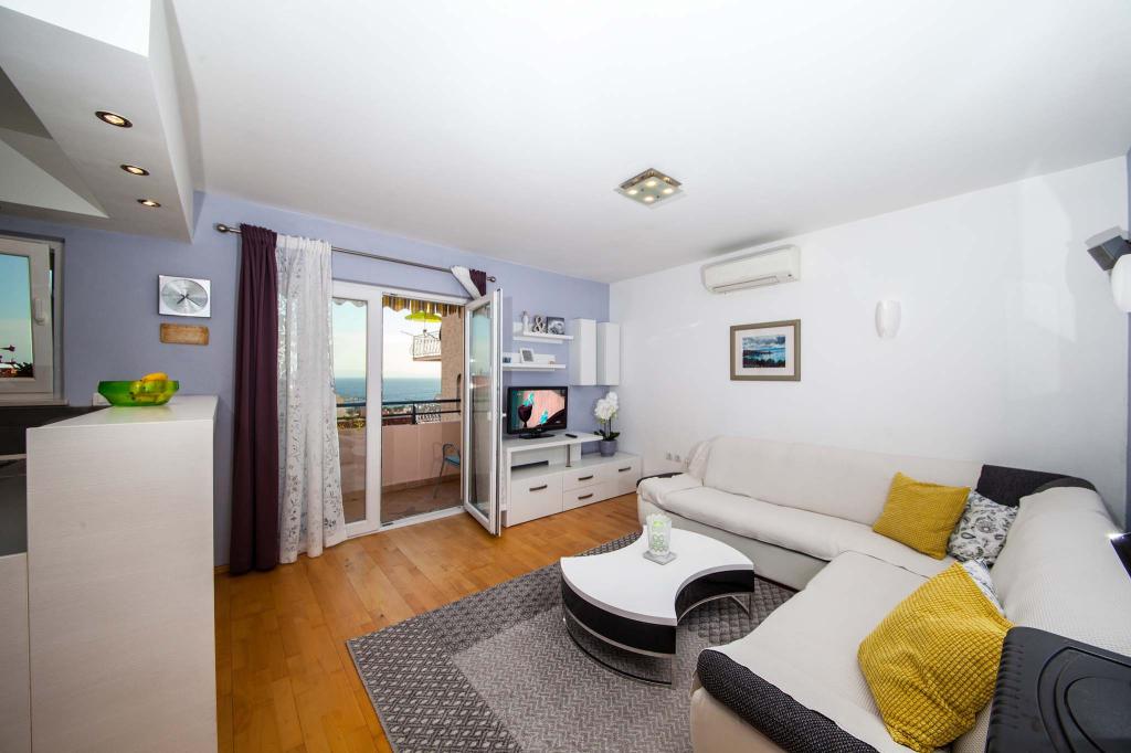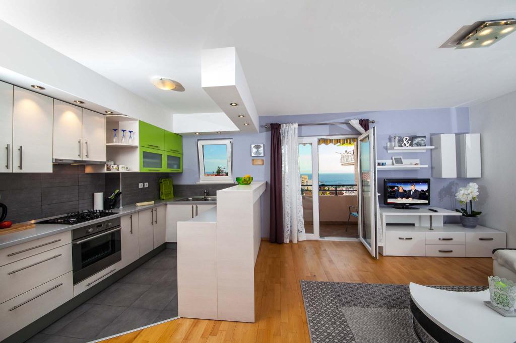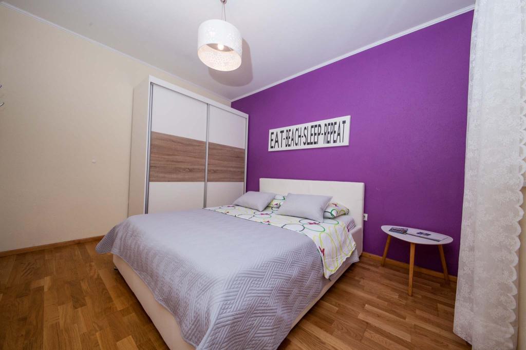 Two-room apartment of 80m2, in a quiet part of the city. Balcony with sea and mountain view. Fully equipped. Bathroom and additional toilet. Two rooms and an extra bed