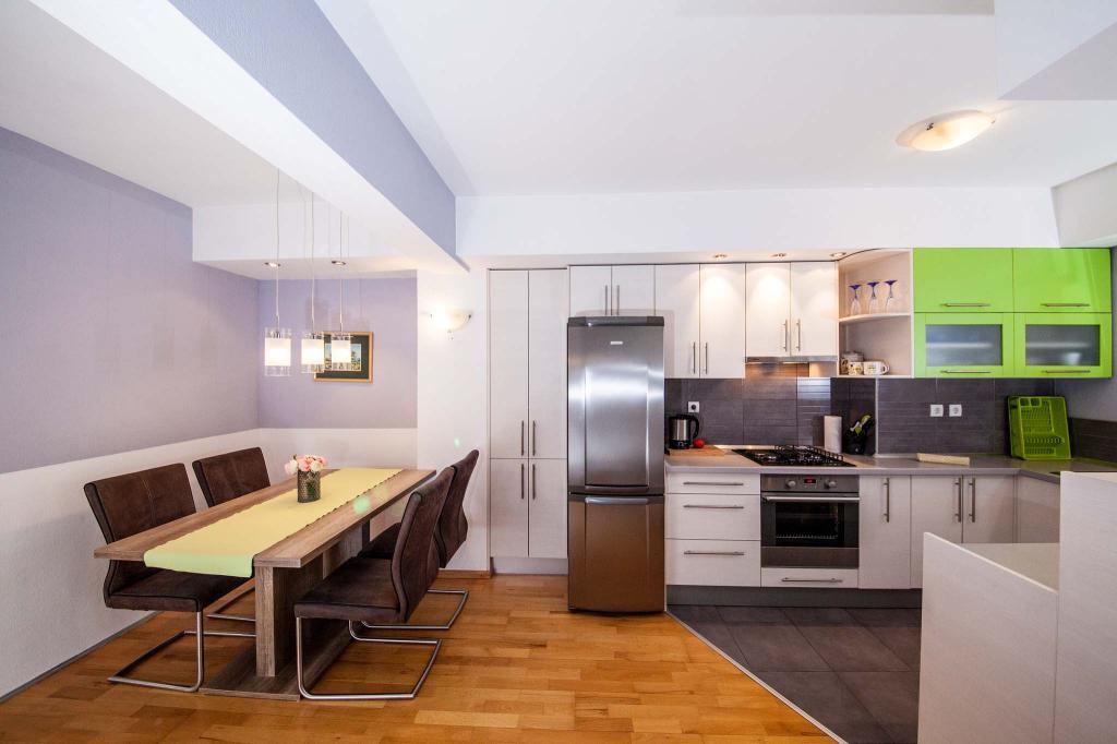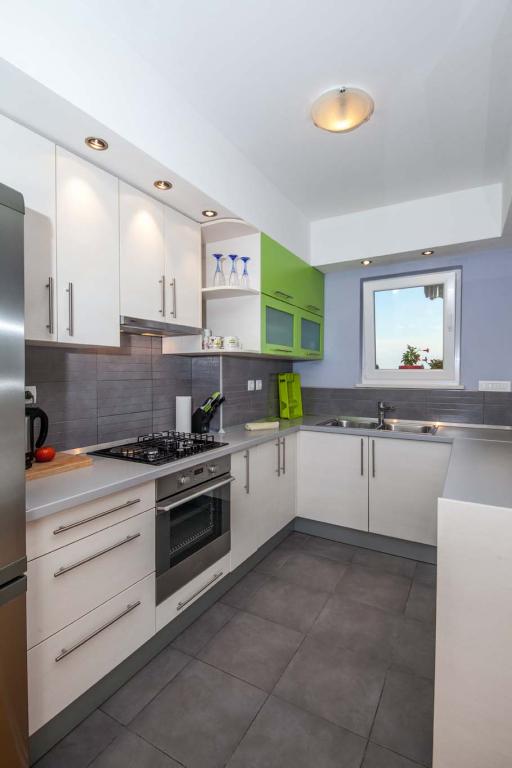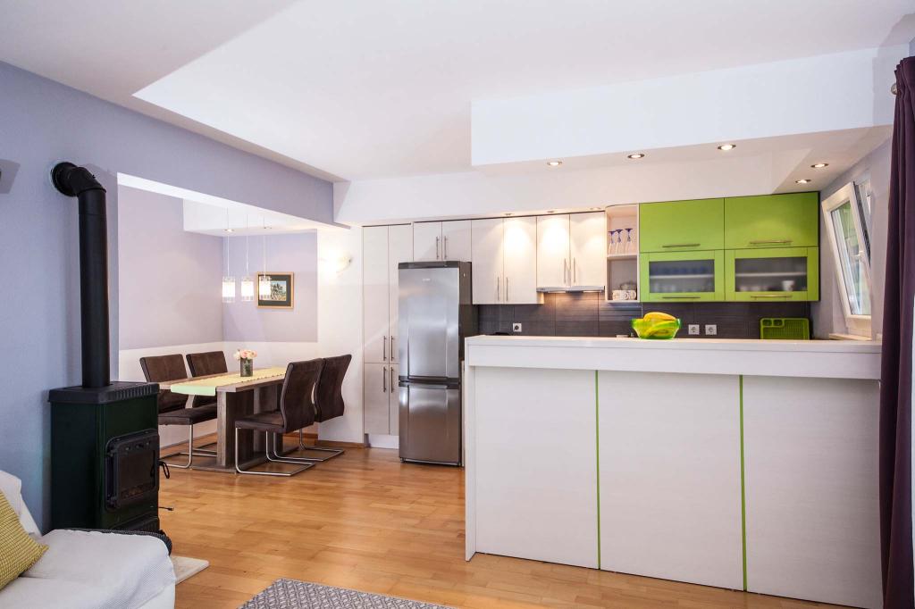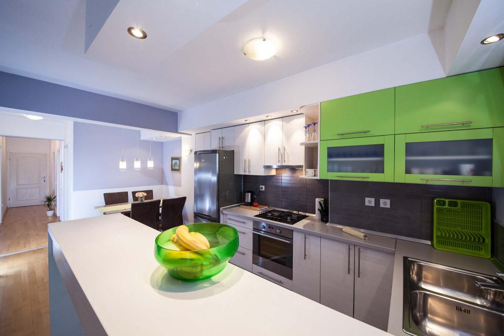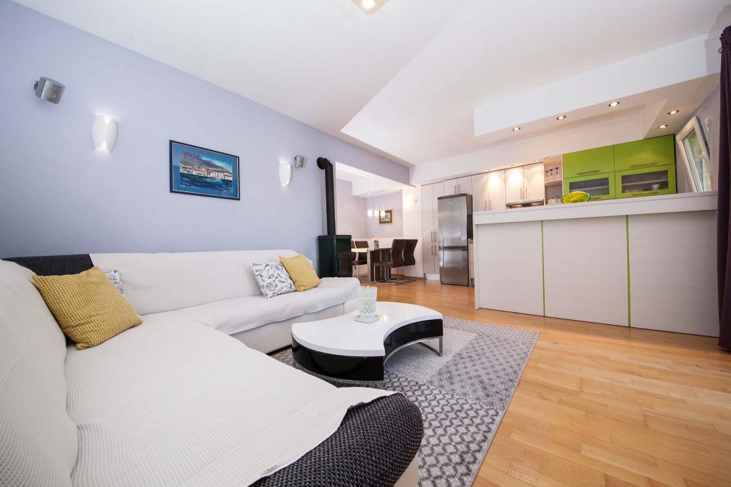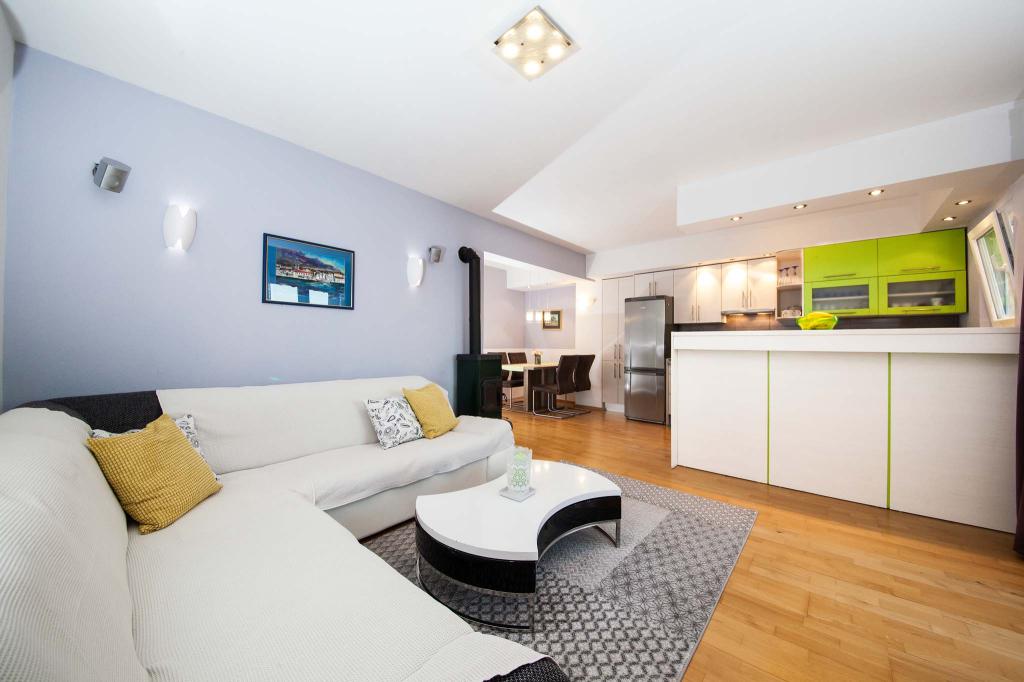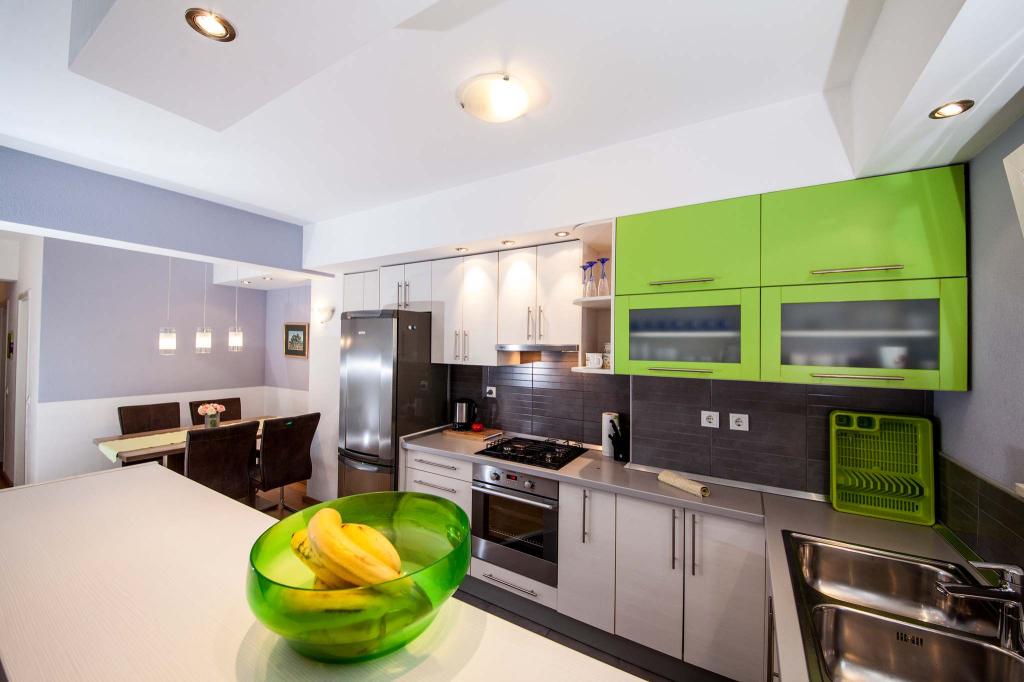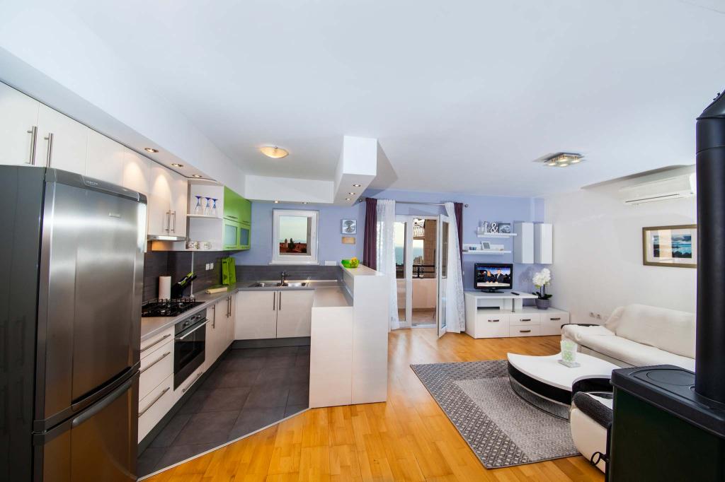 Two-room apartment of 80m2, in a quiet part of the city. Balcony with sea and mountain view. Fully equipped. Bathroom and additional toilet. Two rooms and an extra bed