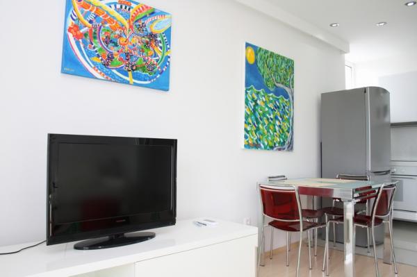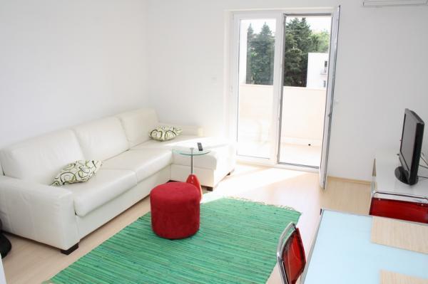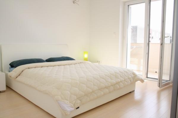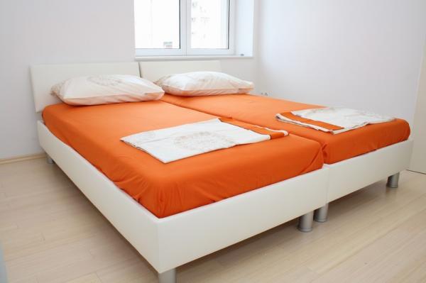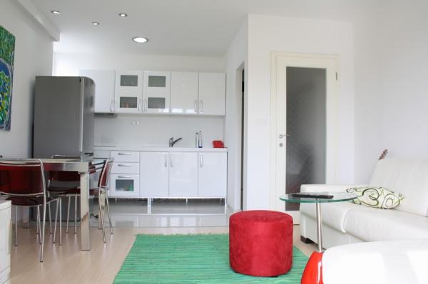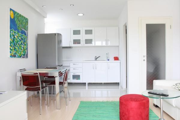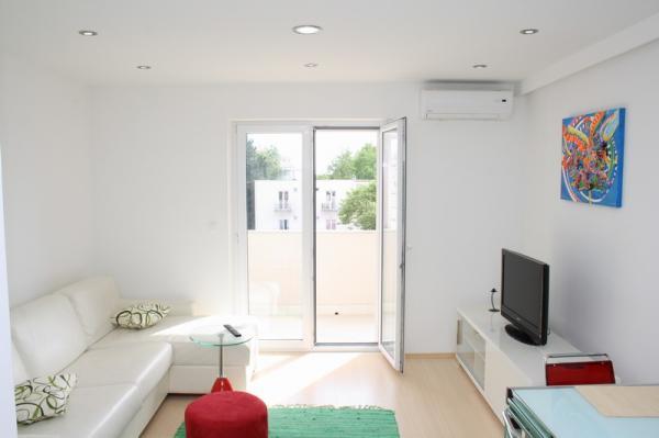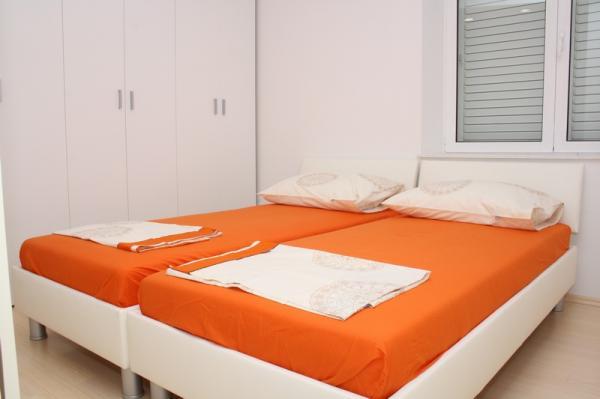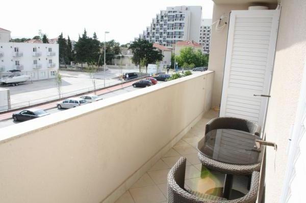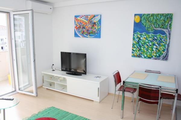 Newly refurbished 65 square meters apartment with 2 bedrooms, large living room, excellently equipped kitchen, hallway and a toilet, situated in the centre of Makarska. Apartment has one double bed in one room and 2 single beds in the other. There is also a demountable couch in the living room. So, 2 extra people do fit in. In the apartment there are washing machine, TV, and air-condition. Apartment has a large balcony which looks towards the town centre. There are also chairs and table to sit and barbecue. Apartment is located in the quiet neighborhood in Makarska, but it takes only 5 minutes to the very centre and Riva, where everything during day and night is happening. Also, it takes 2 minutes walk to most famous city beach. On the top of the building there is an opened common space for relaxing, barbecuing and enjoying the view of beautiful Makarska Rivijera.