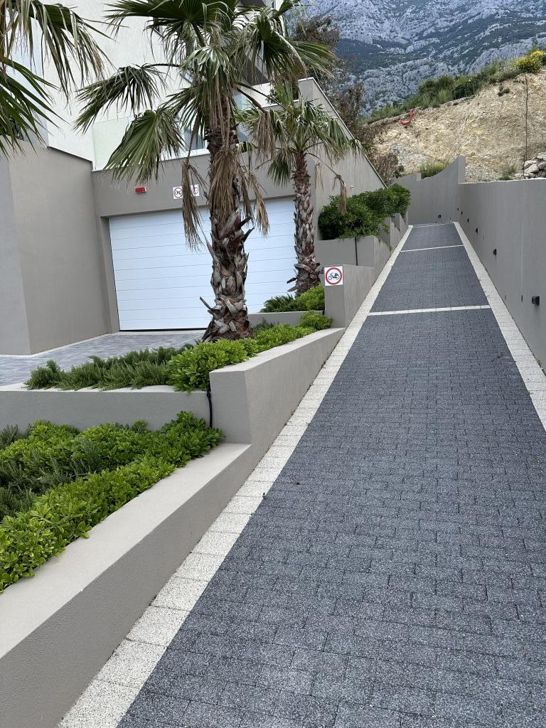 Newly renovated apartment in the very center of Makarska. The building was built according to the highest standards, luxuriously furnished like the apartment itself! Own parking available, outdoor parking no. 6 for LPG-powered cars and two parking spaces on floor -2; No.1 and 2. The apartment is located on the 3rd floor. It is oriented south-west. It consists of a kitchen with a dining room and a living room in an open space model. The kitchen is fully equipped so that you can enjoy preparing your favorite meals in it even during your annual vacation. Spacious bathroom with walk-in shower and washing machine. Two bedrooms! The main bedroom has a 160/200 bed, while the other has two 90/200 beds. The apartment is fully equipped with bed linen, towels, kitchen towels and paper towels. Liquid soap and detergent for washing clothes, toilet paper and detergent for dishes and tablets for the dishwasher. A beautiful view from the covered terrace extends over the city of Makarska and the islands of Brac and Hvar.