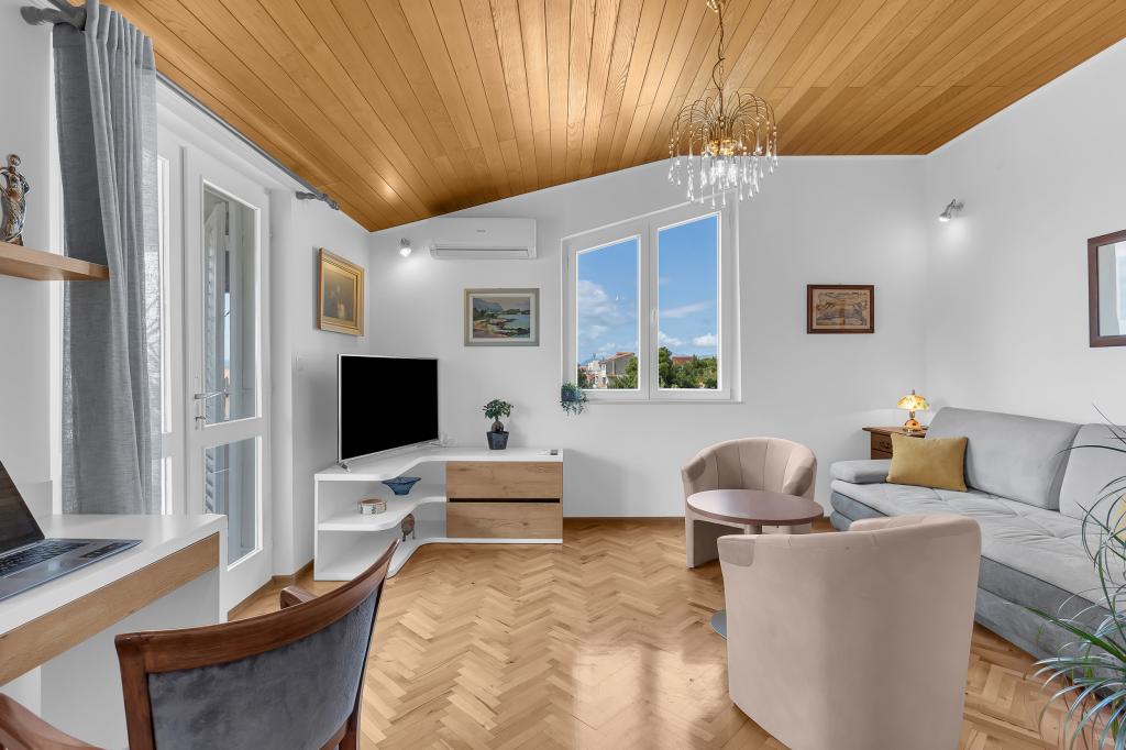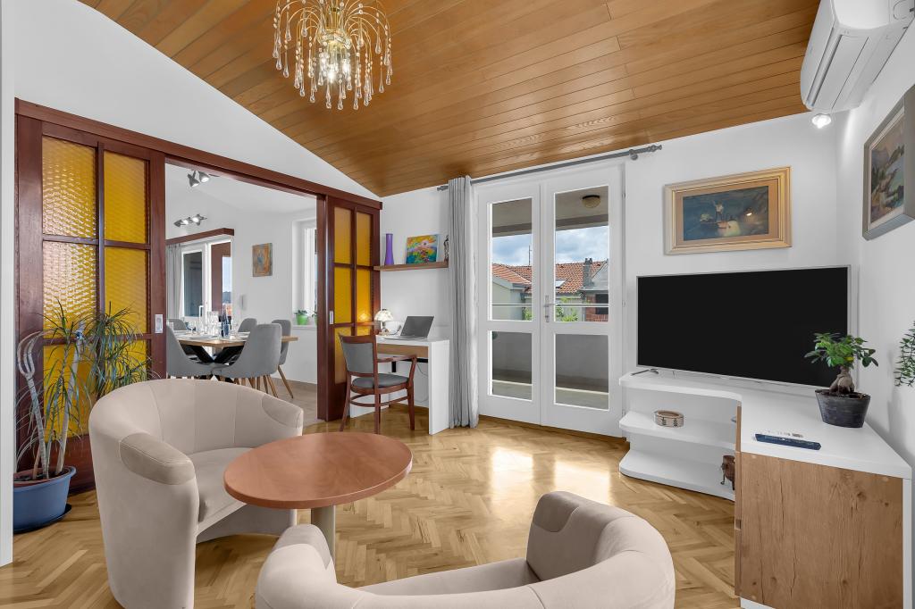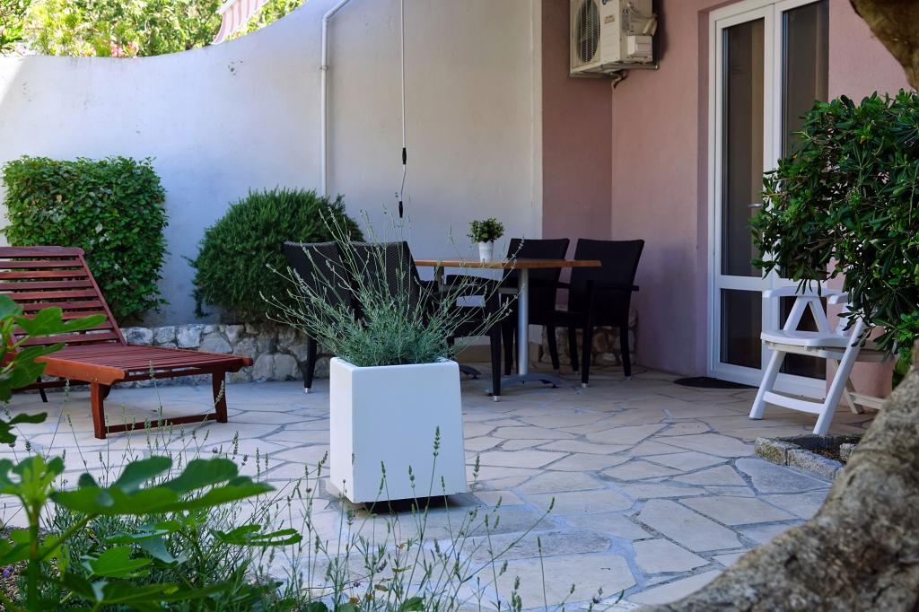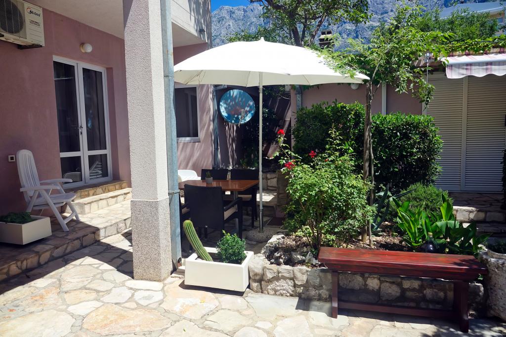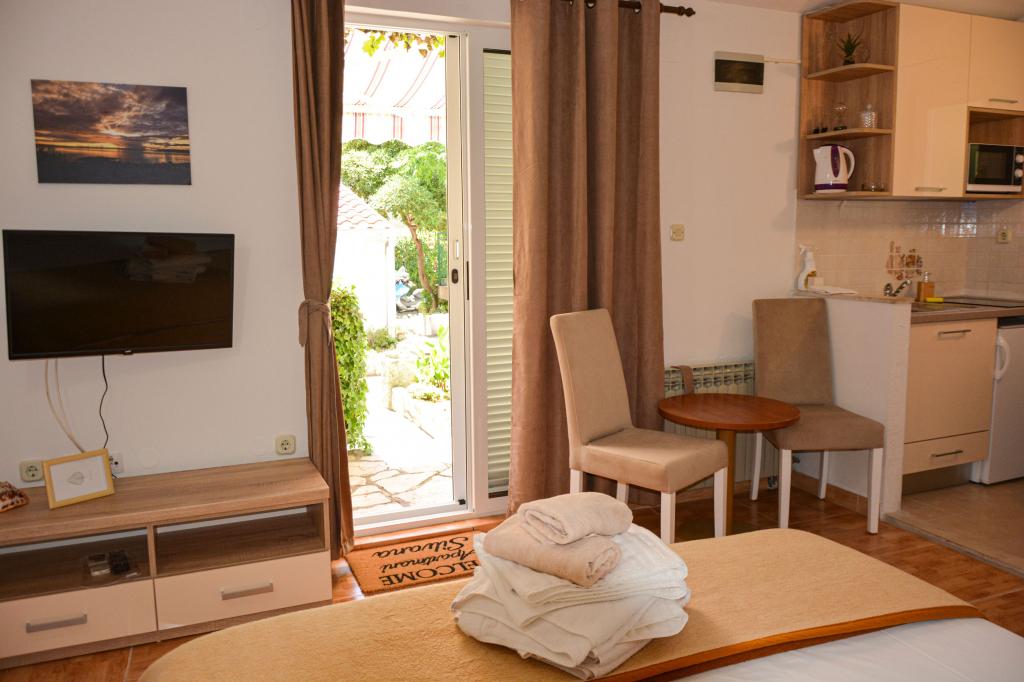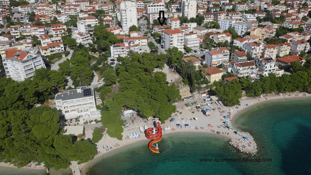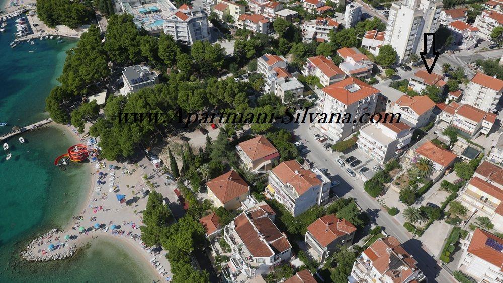 Apartments "Silvana" (four apartments and a studio) are located in the center of Makarska, only 80 meters from the town's sandy beach, which is free to access. All our apartments are equipped with a kitchen, dining room, WiFi internet, satellite TV and a balcony, i.e. a terrace, a yard under the crowns of Dalmatian trees and with the smell of Mediterranean herbs. All apartments are equipped with central heating and air conditioning. They are also suitable for winter tourism. The water in the house at all taps is potable. All apartments have private parking. App 4+2, 2 x App 2+2, App 4+ 1 and Studio are completely renovated and furnished with new equipment.