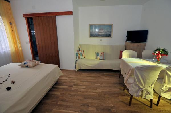 The apartment is located in a quiet area. On the first floor with orientation south-north. Distance from the beach only 5 minutes walk. The apartment can rent and special rooms with private bathroom. The apartment has a large terrace and balcony rooms. Parking. During his stay in the apartment, you can use the free fitness and achieve the 10% discount on cosmetic and physiotherapy treatments in the study PERFORMANCE.