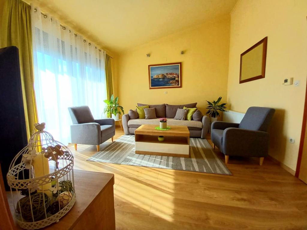 Beautiful apartment, super equipped. 3 (!) bathroom with toilet, washing machine, dishwasher, wrap-around balcony. Snow-white bed linen, towels, brilliant cleanliness. Danjela is very kind, always available. He welcomed us with a bowl of fruit and chocolate for the children. We spent 10 days with them, in the meantime it was my husband's birthday, Danijela made a cake for him. Thank you for everything, we will return home with great experiences.