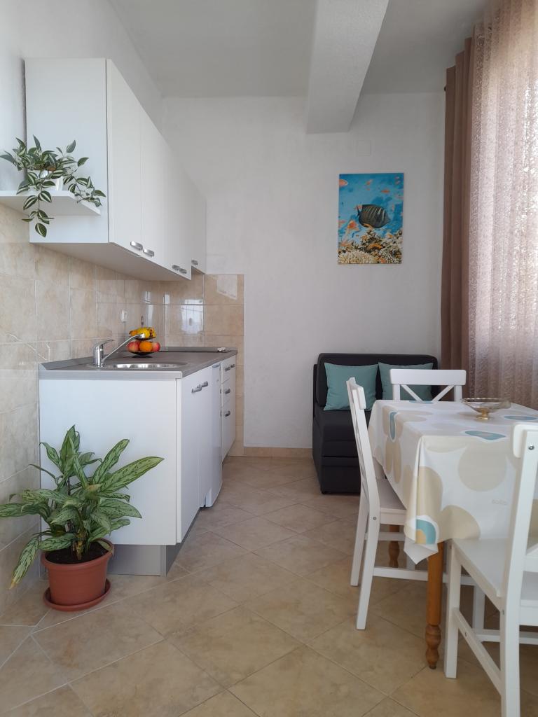 Great accommodation close to the beach. The center is a short walk away. The apartment is fully equipped, clean, with a magnificent view of the sea from the terrace. The owner lady is direct, friendly, always smiling. On the day of our arrival, a plate of fruit, soft drinks, mineral water and chilled sweets for the children awaited in the fridge. The next day we got homemade cake. Perfect accommodation in all respects. I can only recommend.