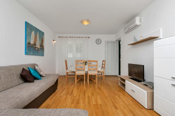 We offer you a comfortably and modernly equipped apartment in the center of Makarska, away from the beach only 50m. The apartment consists of two bedrooms, bathroom, kitchen, living room and balcony. All rooms are air conditioned, tv, free internet. Parking is secured. The beautiful, long beach surrounded by pine trees lies in front of the house. Nearby are restaurants, children's playground, pharmacy, shops ... Reservations require 20% advance payment. I'm available for any questions you may have. Best regards, Katarina Birgmajer