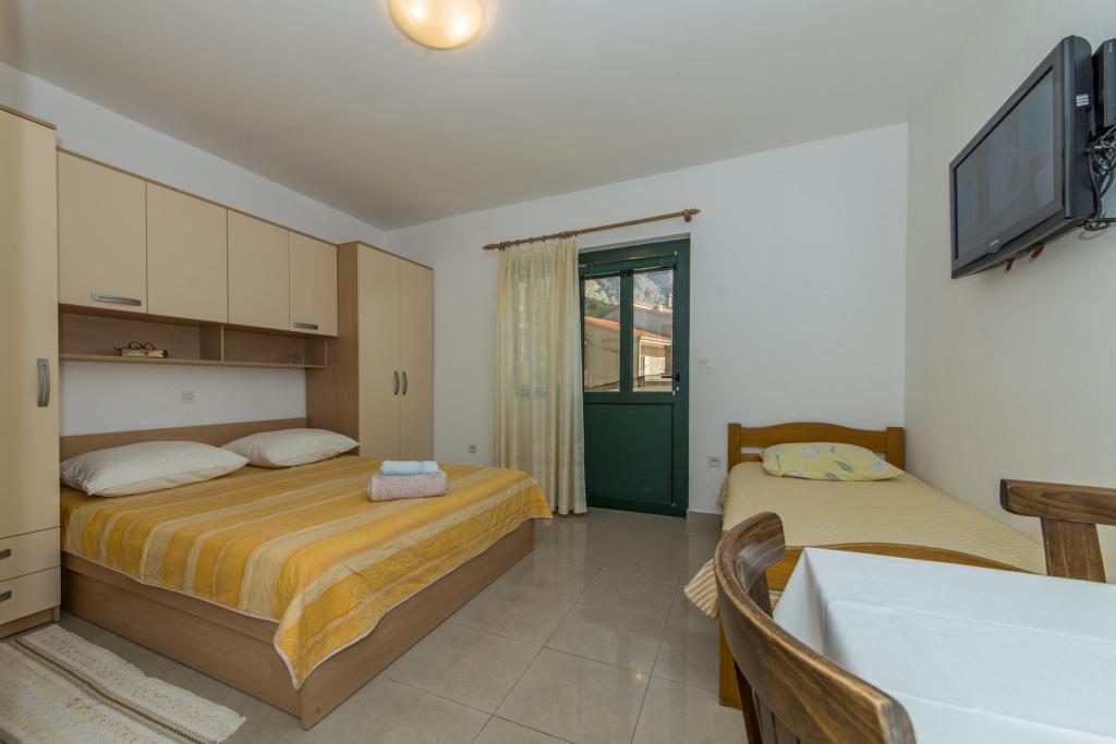 If you want to spend your vacation and unforgettable moments in Makarska, we offer you fully and modernly equipped apartments Bešker in a quiet part of Makarska. The facility is located only 5-6 minutes walk to the beach and 7-10 minutes from the center. Makarska is one of the most famous tourist destinations on the Croatian coast, attractive for its natural and climatic characteristics, diverse tourist offer and hospitable hosts. Sandy and pebble beach, it is almost 2 km long and it was, and still is, recognizable today. Along the promenades lined with pine trees there are various tourist facilities, and plenty of entertainment for children and adults. Makarska is located at the foot of the mountain massif Biokovo (1762 m), which protects against the penetration of the continental climate and has lush Mediterranean vegetation, mild winters, long and warm summers. The sun shines for more than 2750 hours a year with air temperatures above 20 ° C from June to September, and the clear sea from June to October has temperatures above 20 ° C.