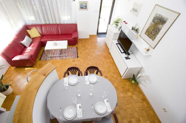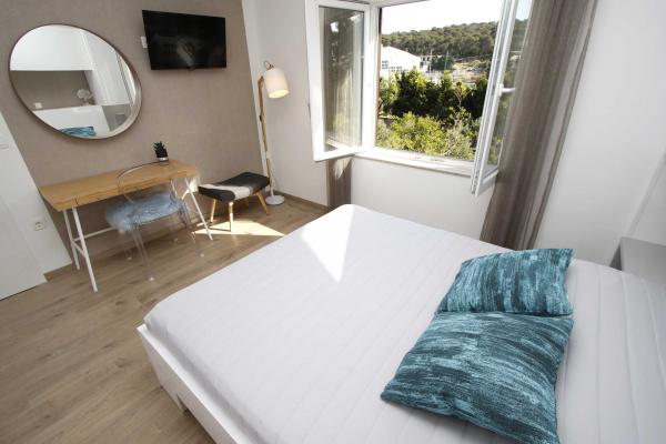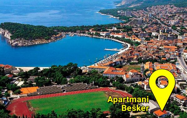 The house is located not far from the center of Makarska, so it is all near the pedestrian area. Parking is provided inside the outside courtyard of the house. Rooms 1, 2, 3 and Apartment A3 are located on the ground floor. Rooms have a shared fully equipped kitchen (dishwasher, oven, stove, fridge) and can use tables in the yard. Apartment A1 and A2 are located on the first floor. They have a fully equipped kitchen, air conditioning, TV, satellite, balcony, Wi-Fi. Apartment A3: Room, bathroom, kitchen, air conditioning, TV, Wi-Fi, table in the yard Room 1: Bathroom, air conditioning, TV, Wi-Fi, shared kitchen, table in the yard Room 2: Bathroom, air conditioning, TV, Wi-Fi, shared kitchen, table in the yard Room 3: Bathroom, balcony, air conditioning, TV, Wi-Fi, shared kitchen, table in the yard Apartments A1 and A2: Ideal for 4 people. It consists of a bedroom, a bathroom, a living room with a sofa bed, a fully equipped kitchen (dishwasher and freezer, oven, stove, fridge), balcony, air conditioning, Wi-Fi and TV.