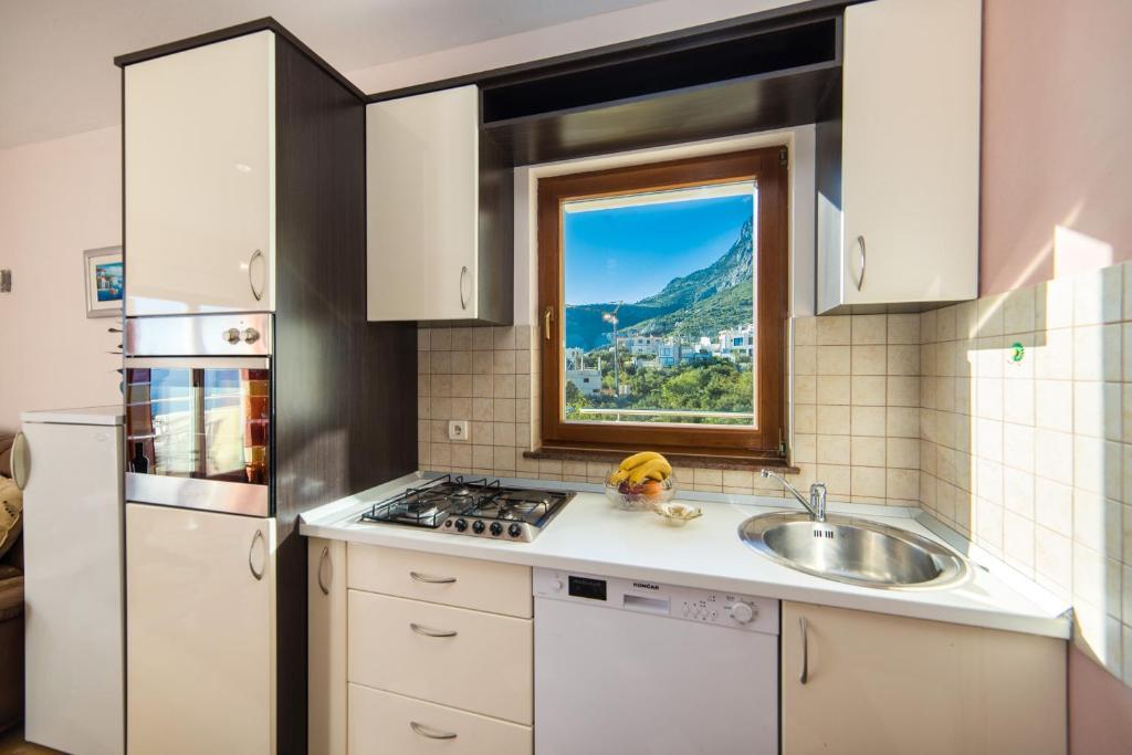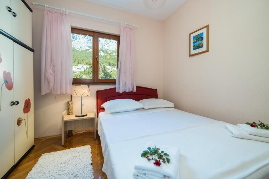 It is located in the suburb of Makarska Great Hill. The apartments are in a quiet environment, 0kruženi olive trees and the fresh mountain air bed is comfortable as well as rural walking paths. The apartments are ideal for families who come by car and where it is not only important near the sea, but also a pleasant and relaxing holiday without the noise. To the beautiful sandy beach takes 4 minutes kolima.Parking on the beach for the whole day costs of 1do3 euros, depending on the month ljetovanja.Apartmani have 2 of the interests which offer a breathtaking view of the city of Makarska and the nearby otoke.Sa north side offers a view mountain Biokovo.Apartmani are on the first floor, air conditioned and comfortable for your stay.