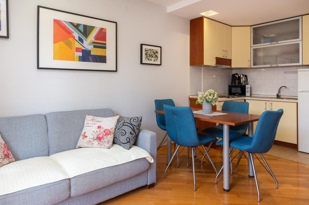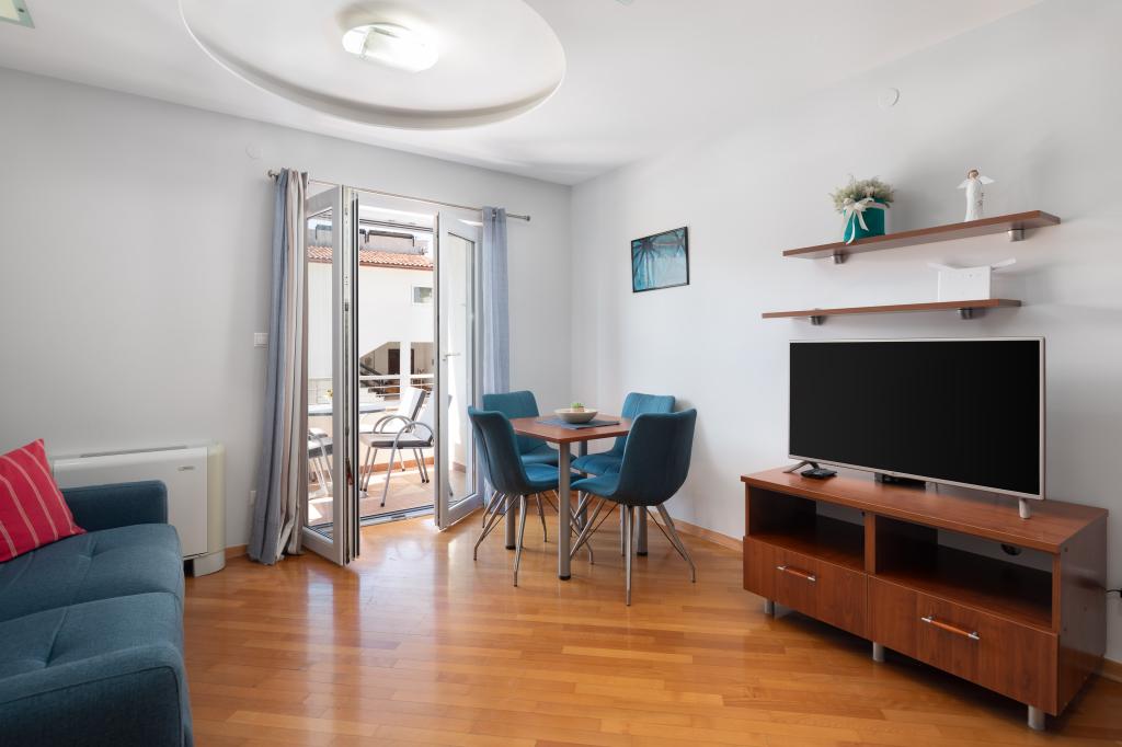 Apartments Brkić offer spacious family apartments with quality furniture. All apartments have a high-quality WiFi connection, are air-conditioned and come with a free parking space in front of the house. Our penthouse apartment offers a large terrace with a view of the sea and a fireplace for grilling and baking. On the ground floor of the building there is a common room where laundry can be done. Our staff is available for advice and assistance throughout your stay.