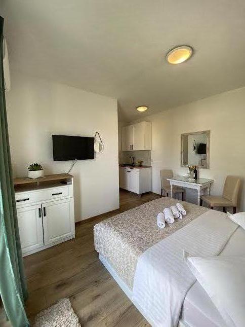 New furnished apartments are located in a family house situated max. 5 minutes walk from the city center and 5 minutes to the small beach, the main beach 10 minutes walk. Each apartment has a separate entrance, guests have access to a large barbecue and parking. A supermarket is located 40 m from the house.