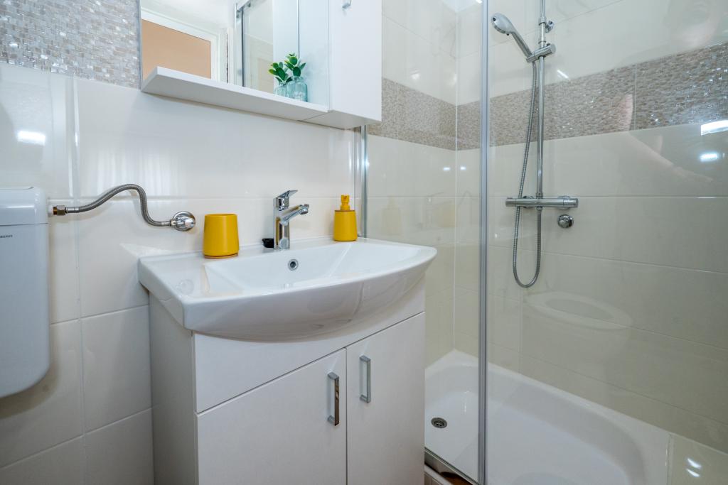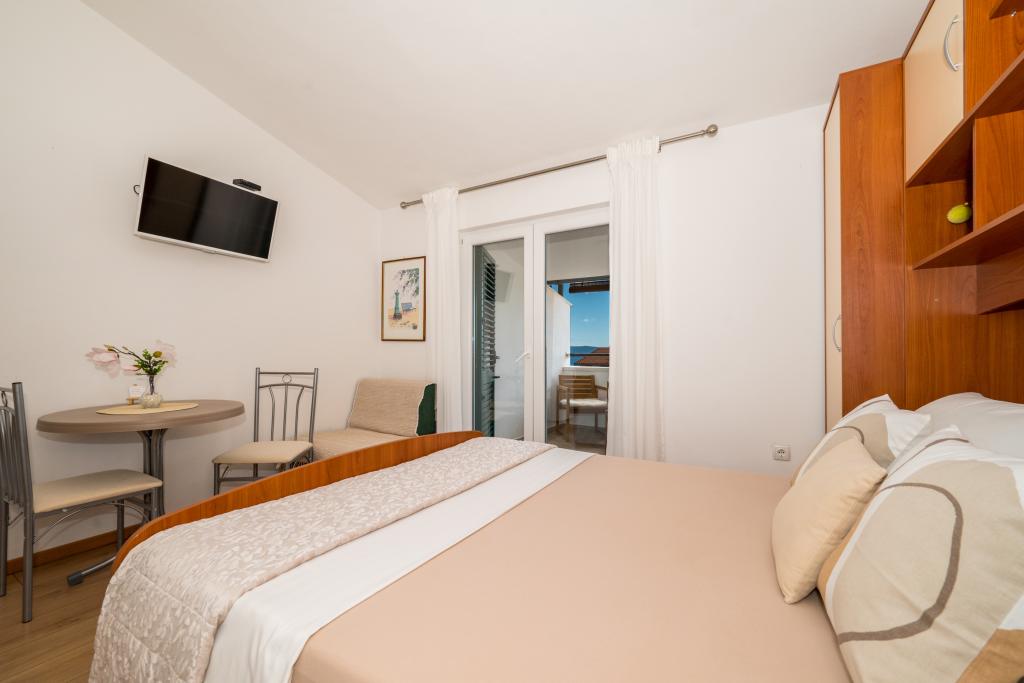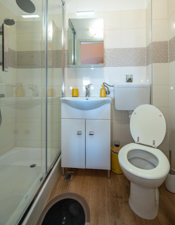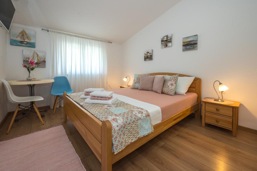 The rooms are neat, modern, well-equipped, and are located on the second floor of a family house in front of which there is a yard for parking guests' cars. The house itself is located in a beautiful, very touristic part of Makarska, about 90 m from the city beach, and within 200 m of which there are 8 hotels. The host has many years of experience in the tourism industry. At a distance of 500 m from the house there is a tennis center and a water park, at 800 m the main urban park of the city with sports and recreational facilities, and at 1000 m the beginning of the city center. At 100 m there is a diving center, and at the same distance there is the Biokovka hotel, which offers indoor swimming pools, saunas, gyms, physical therapy and massages. Nearby attractions include the Shell Museum in the city, the Biokovo Nature Park with the famous Skywalk, the Red and Blue Lakes in Imotski, and tourist boat trips to the island and the city of Korčula, and the famous Zlatni rat beach on the island of Brač.