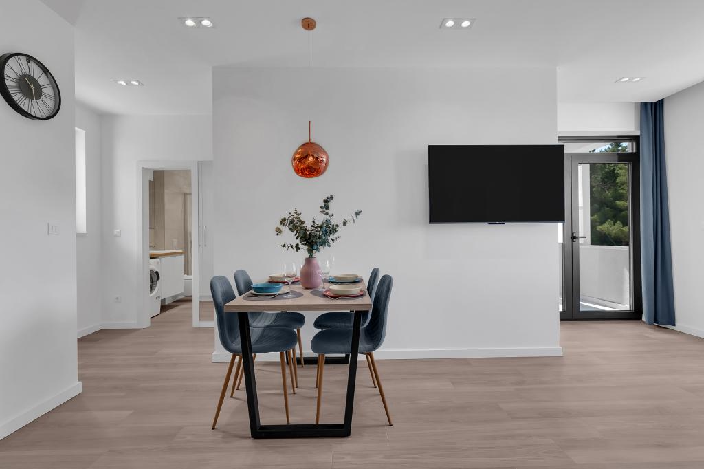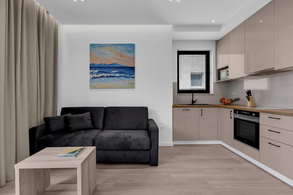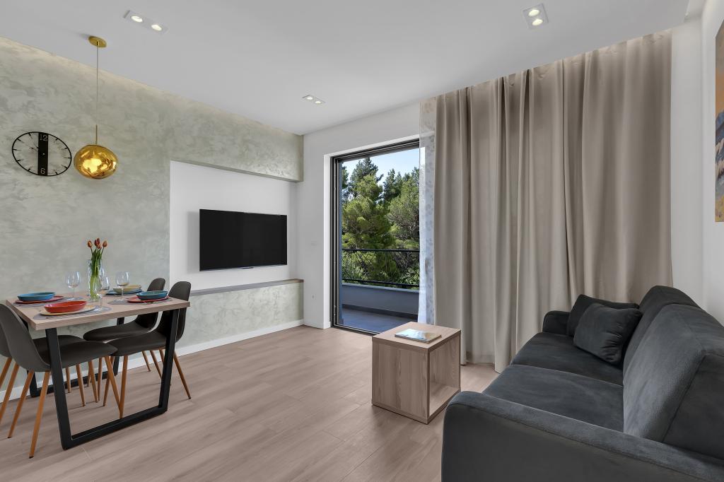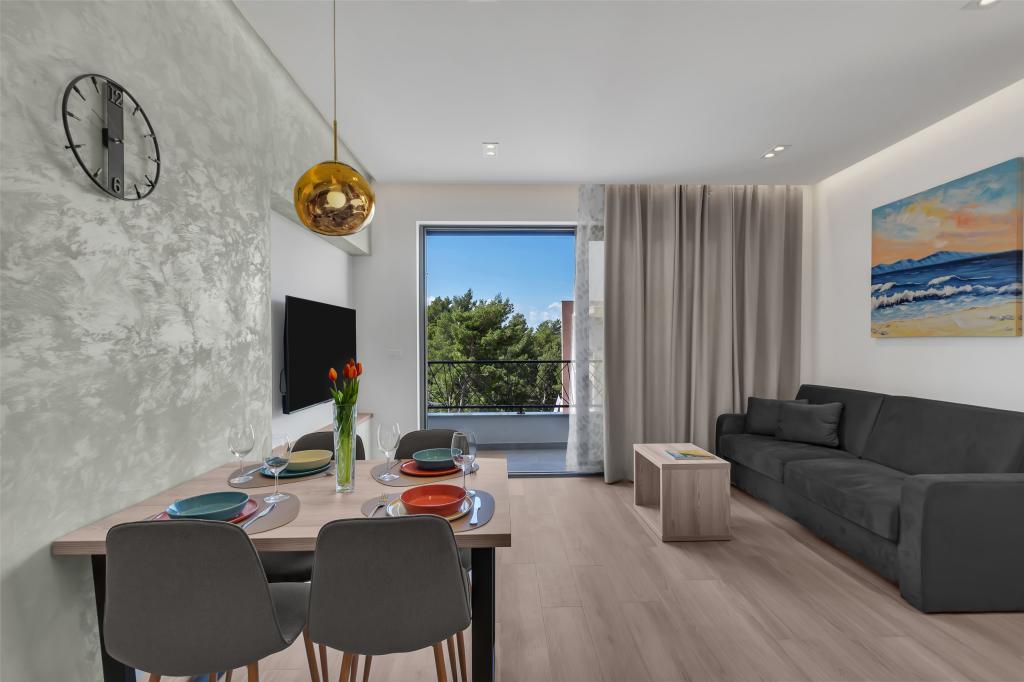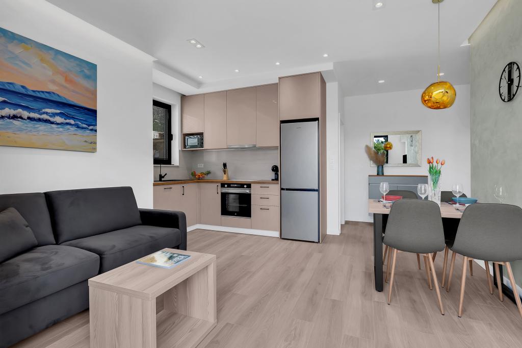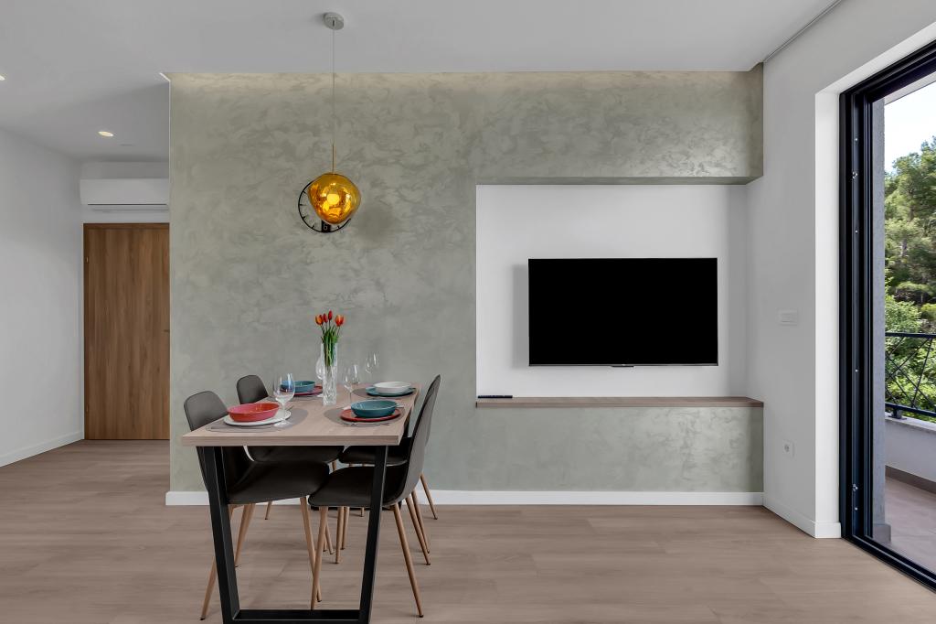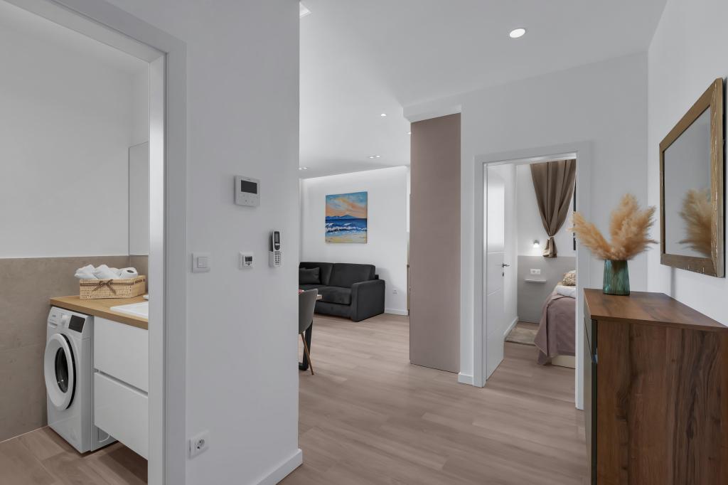 Brand new, modernly decorated apartment equipped with all household appliances for a more comfortable stay, including bed linen and towels. Private parking is provided within the building. The apartment is air-conditioned in all rooms. We are located in a quiet neighborhood near a children's playground and a shop. The balcony offers a view of the beautiful mountain Biokovo and a part of the Adriatic Sea.