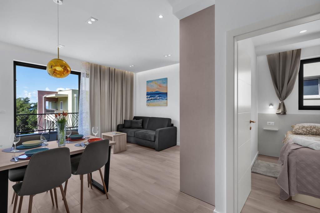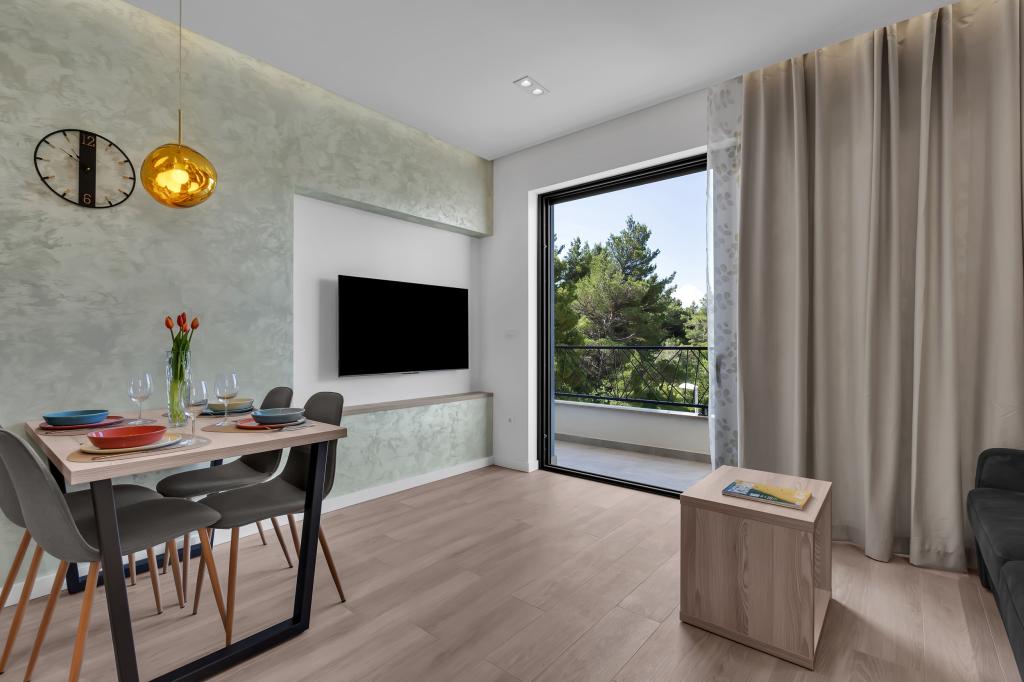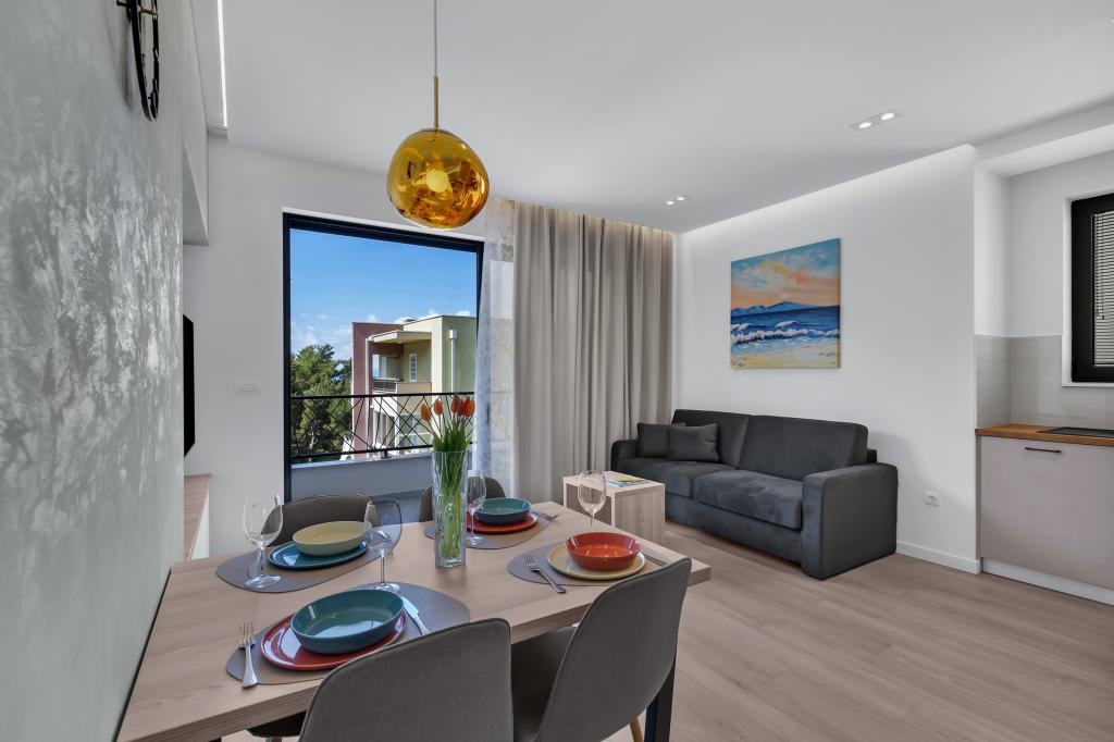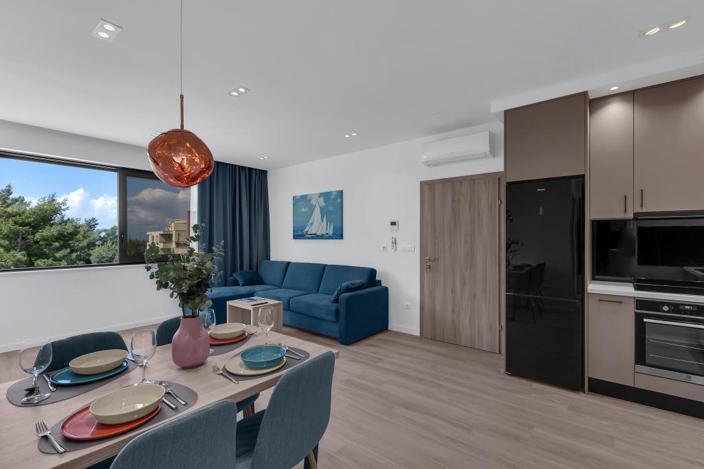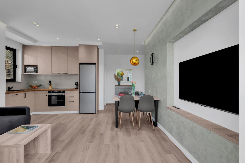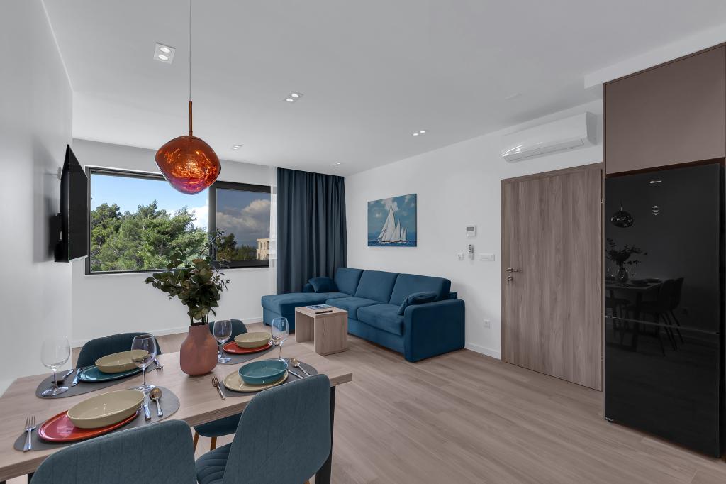 Brand new, modernly decorated apartment equipped with all household appliances for a more comfortable stay, including bed linen and towels. Private parking is provided within the building. The apartment is air-conditioned in all rooms. We are located in a quiet neighborhood near a children's playground and a shop. The balcony offers a view of the beautiful mountain Biokovo and a part of the Adriatic Sea.