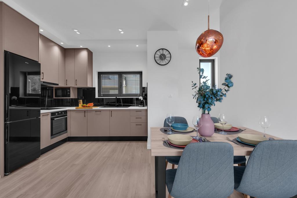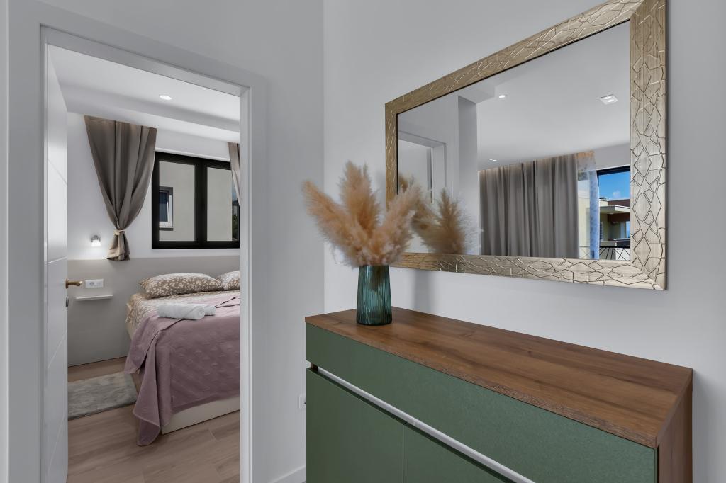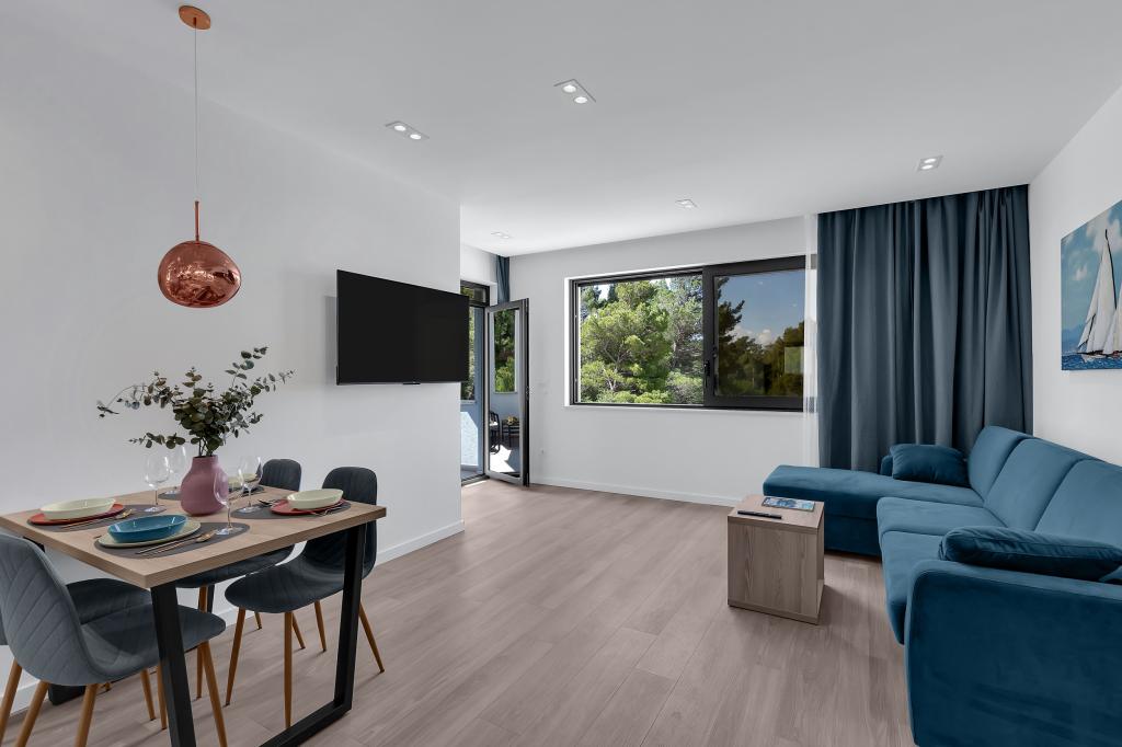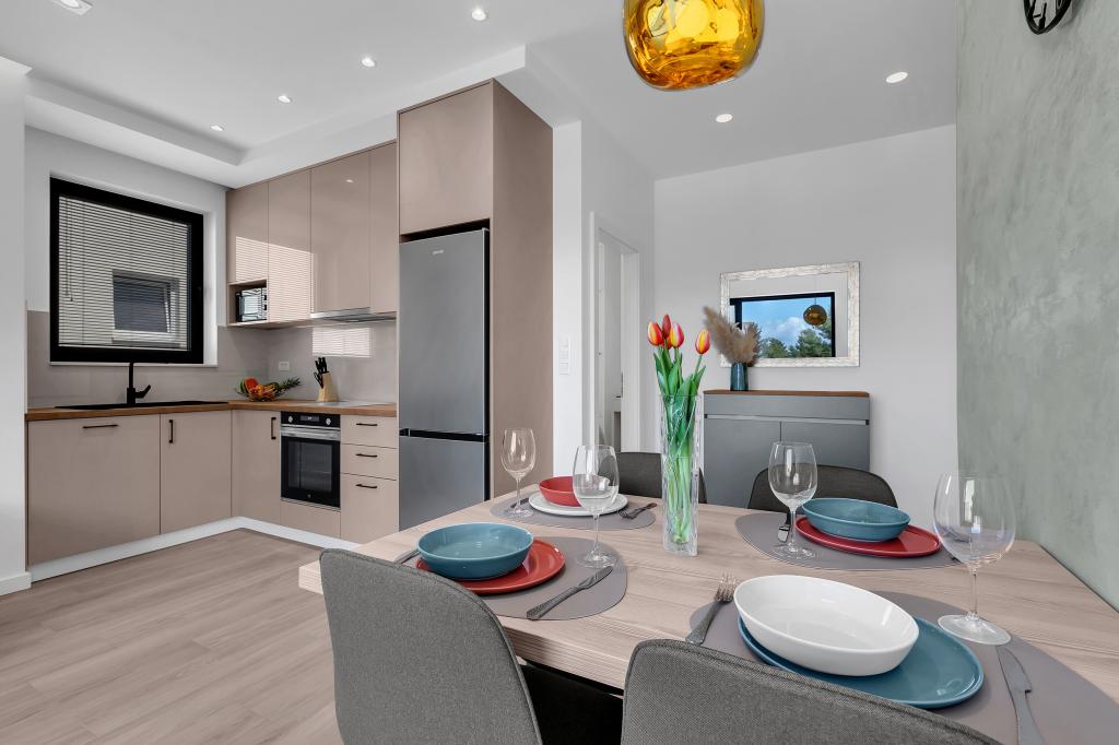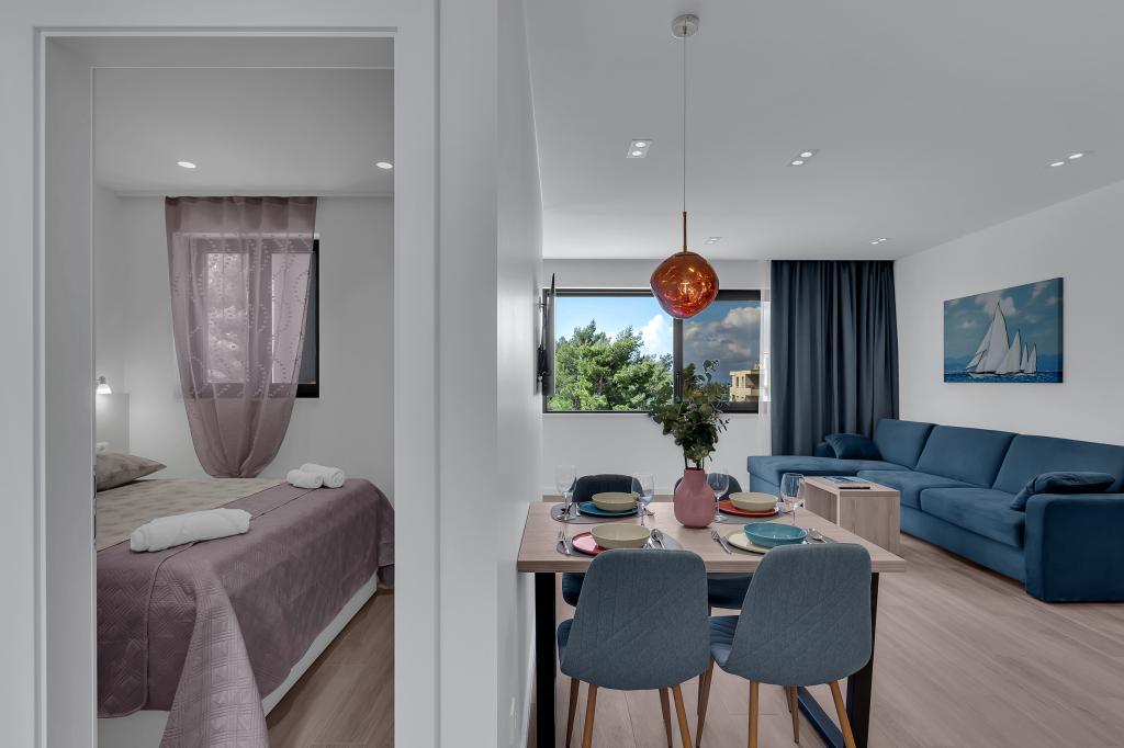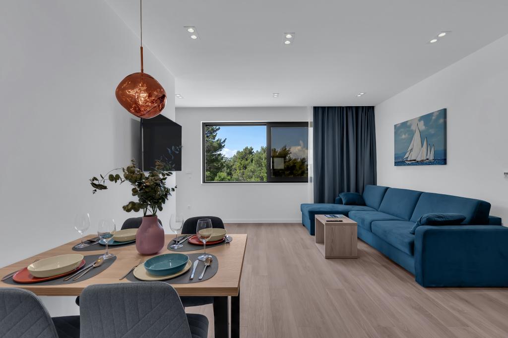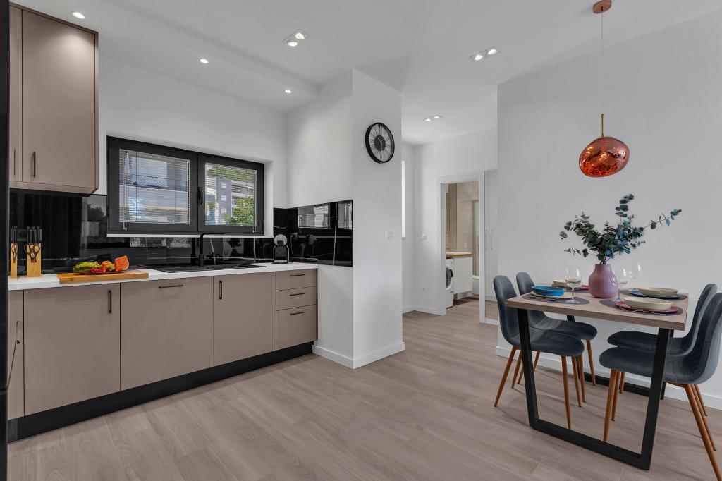 Brand new, modernly decorated apartment equipped with all household appliances for a more comfortable stay, including bed linen and towels. Private parking is provided within the building. The apartment is air-conditioned in all rooms. We are located in a quiet neighborhood near a children's playground and a shop. The balcony offers a view of the beautiful mountain Biokovo and a part of the Adriatic Sea.