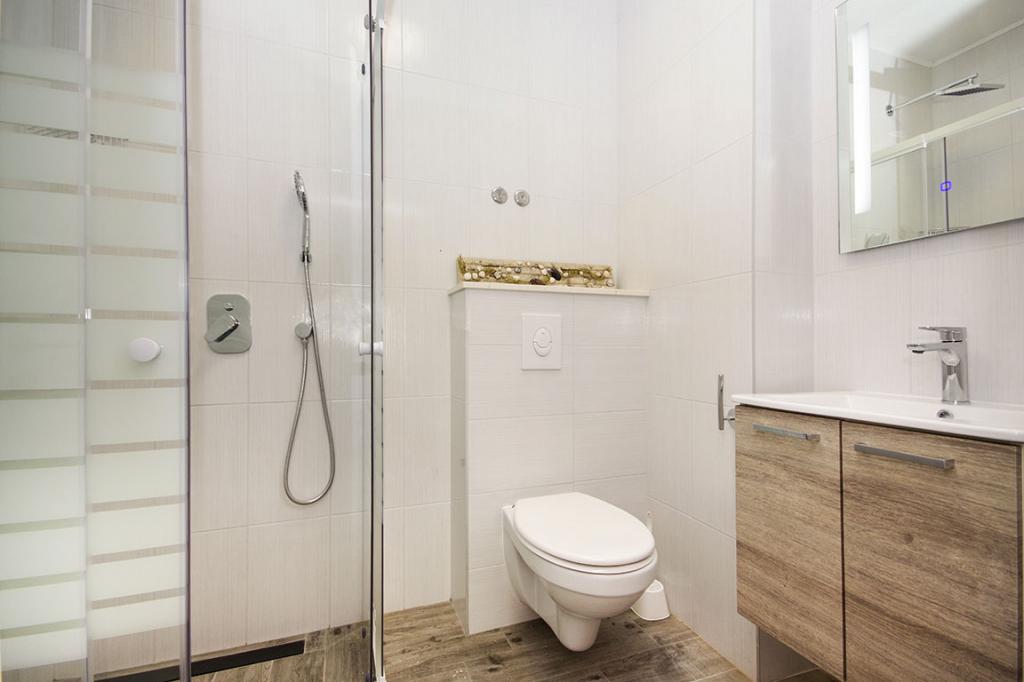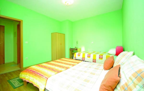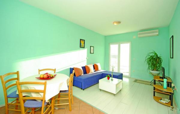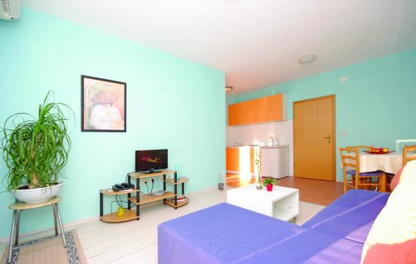 Apartments Makarska are situated in the western part of the city of Makarska, in the vicinity of most beautiful beaches of Makarska. Our accommodation is brand new. Each apartment has a living room, bedroom, toilette with a bathroom, fully equipped kitchen, balcony, air conditioning, its parking space, satellite television and radio set. All apartments have the computer with the free internet connection. Also all apartments have the safety deposit box for your personal things. We have 6 apartments in total: Green, Yellow, Blue, Orange, White and Big apartment. Three of them can accommodate two to four people (A2+2, 45m2) , Green apartment is for four to six people (A5, 55m2), White is for 3 people (A2+1, 45m2). Big apartment is for 7 - 11 people (A 9+2, 110m2).