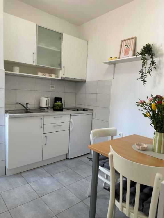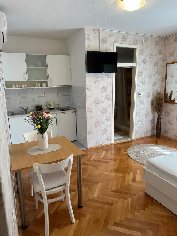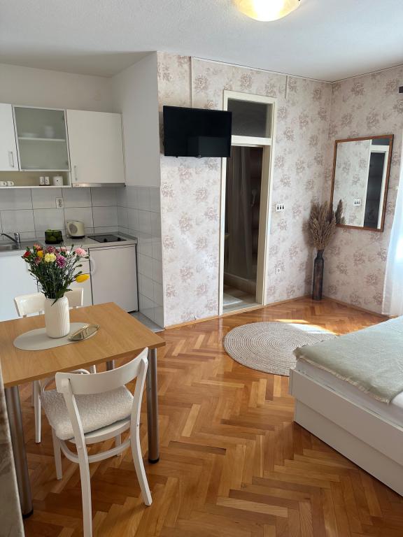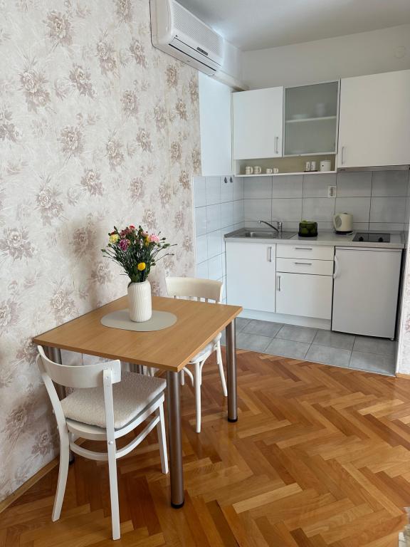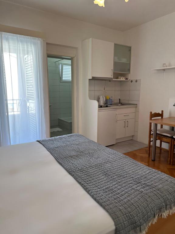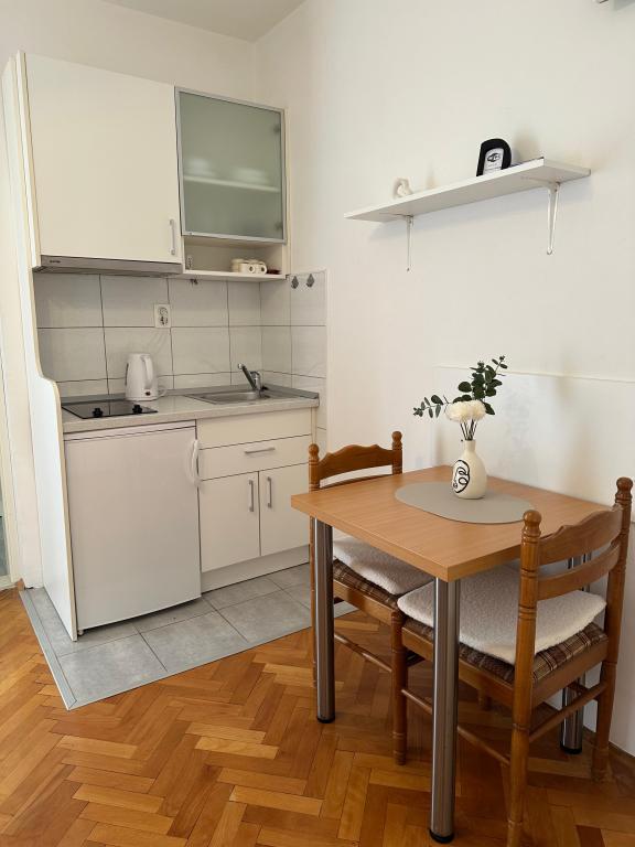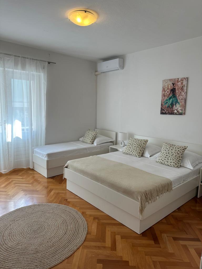 Apartments Olga 1 are located in Makarska, the "Plaža" area, only 50 meters from the sea and the beach. We offer 3 apartments located on the 1st floor of the house. All apartments have air conditioning, a private bathroom, an equipped kitchen, TV/SAT, WiFi and a balcony where you can spend your time. Private parking is located in the yard in front of the house. The distance from the nearest supermarket is 100 meters, and restaurants and cafes are 50 meters away and are located on the beach. The distance from the city center is 5 minutes on foot. The apartments are located in a peaceful and quiet environment.