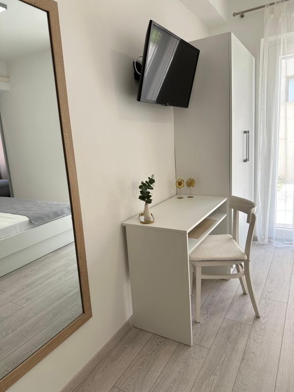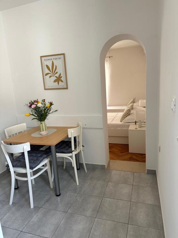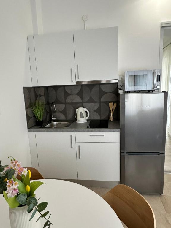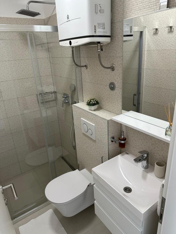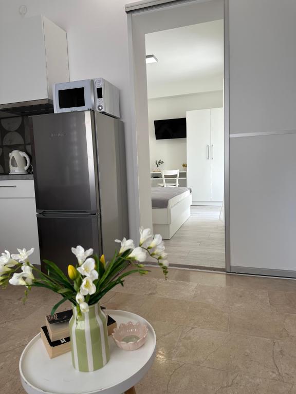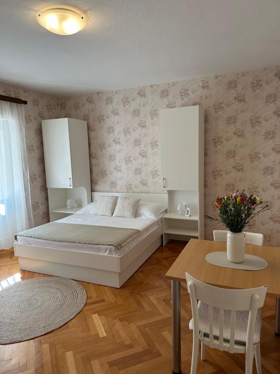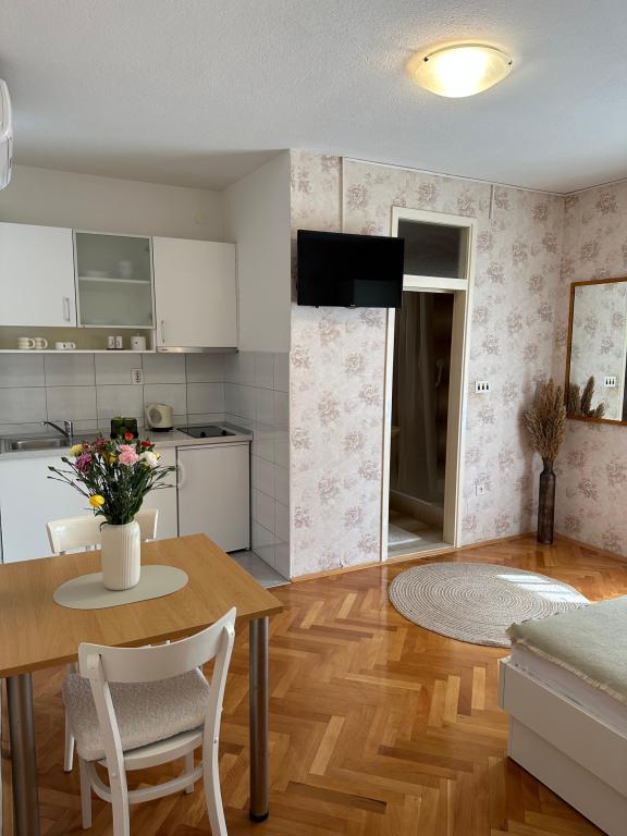 Apartments Olga 1 are located in Makarska, the "Plaža" area, only 50 meters from the sea and the beach. We offer 3 apartments located on the 1st floor of the house. All apartments have air conditioning, a private bathroom, an equipped kitchen, TV/SAT, WiFi and a balcony where you can spend your time. Private parking is located in the yard in front of the house. The distance from the nearest supermarket is 100 meters, and restaurants and cafes are 50 meters away and are located on the beach. The distance from the city center is 5 minutes on foot. The apartments are located in a peaceful and quiet environment.