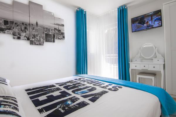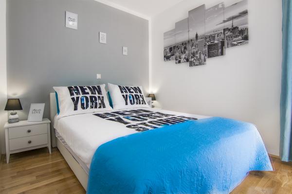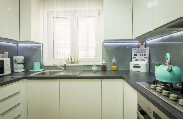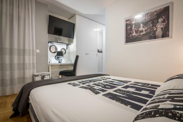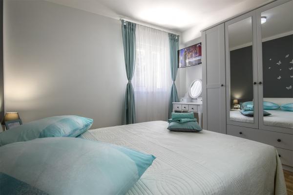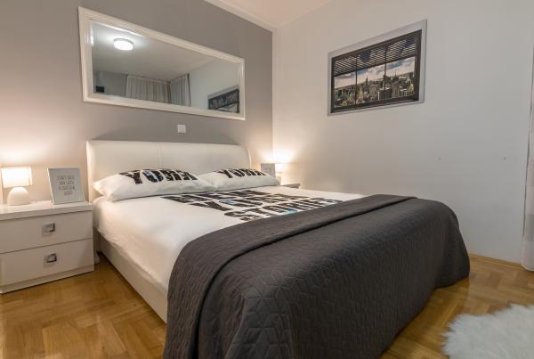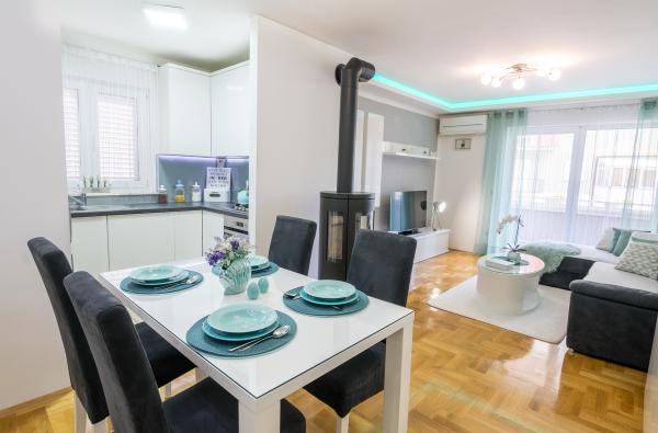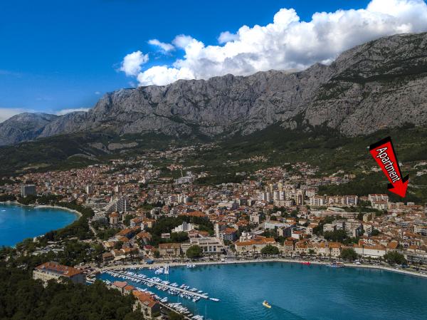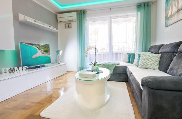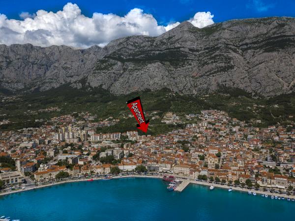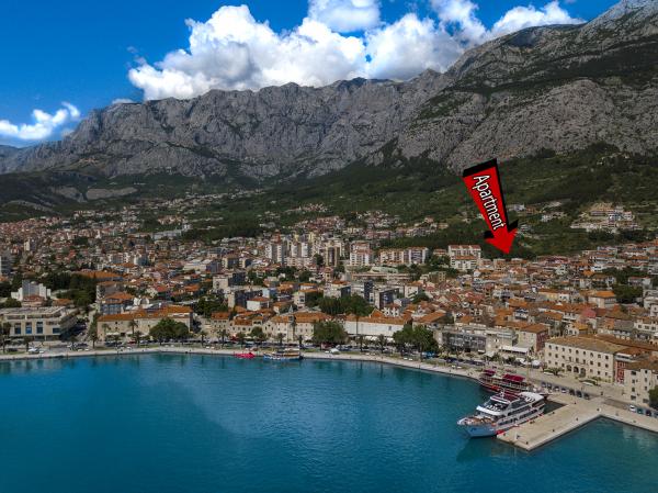 Modernly equipped apartment in the central part of Makarska, 5 minutes walk to the old part of town, 15 minutes walk to the main beach. Parking is provided, free Wi-Fi. Each room has a separate TV set, the kitchen is fully equipped.