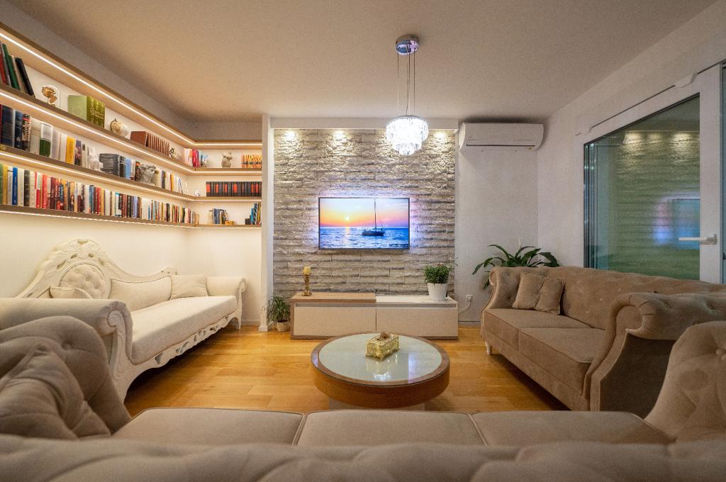 Penthouse Jure and Penthouse Nikola in Makarska are luxurious and spacious apartments of 135 m², ideal for a comfortable and relaxing stay. Each apartment consists of three elegantly decorated bedrooms, two modernly equipped bathrooms, a garage and a large terrace with a spectacular view of the sea and the city, perfect for enjoyment and relaxation. Located in a quiet area, they are 2 km from the city center and 1 km from the sea, providing an ideal combination of privacy and proximity to all amenities.