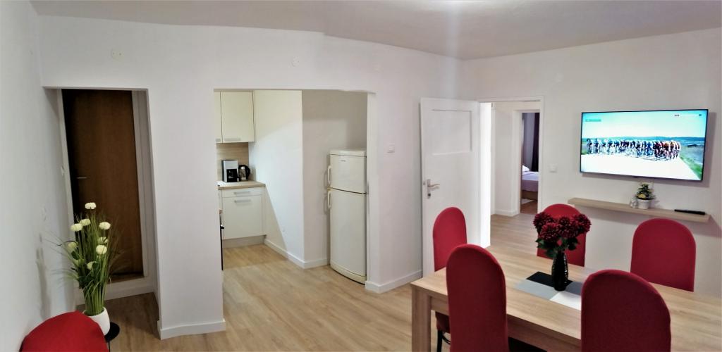 Everything is absolutely great, very pleasant attitude of the hosts, their willingness, attention and friendliness is amazing, help with the doctor, thermometer, medicines will be arranged, they will help. Everything is clean, perfectly prepared for guests. If you want to cook, the kitchen has everything, two shops within 40 and 50 m, a bakery 60 m. This apartment is very well located, facing away from the street, so it is quiet for sleeping. Parking right in front of the apartment, if you have children, you don't have to cross the road anywhere, just safely get into the car and go to the water.